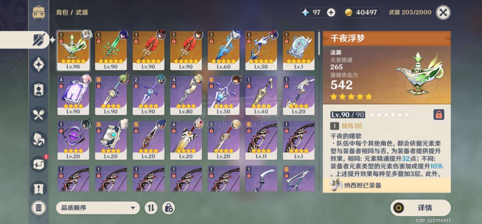 满命草神纳西妲带专武,一命胡桃专武,岩君带护摩,水神,雷神,基本都是充的,氪了8000多