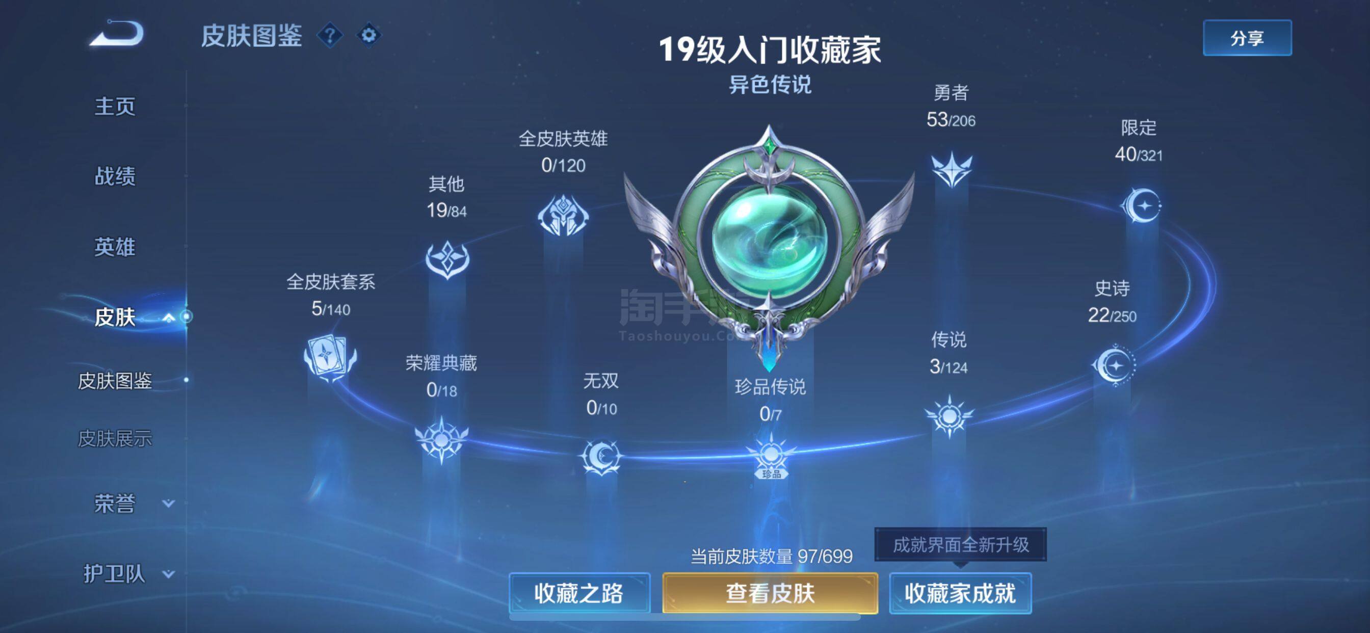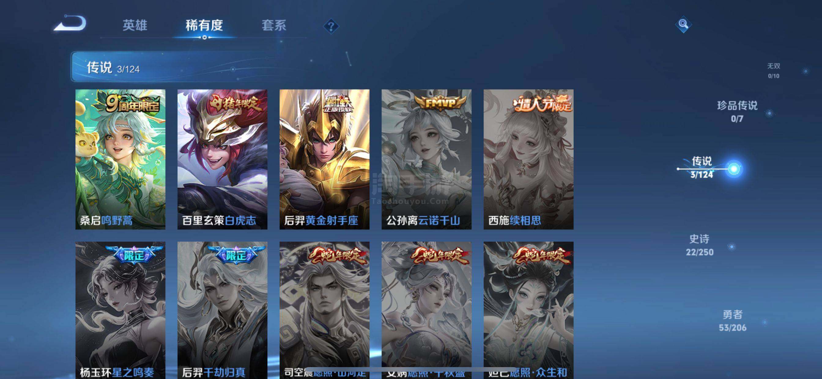 【传说皮肤】:后羿黄金射手座,百里玄策白虎志,桑启鸣野蒿