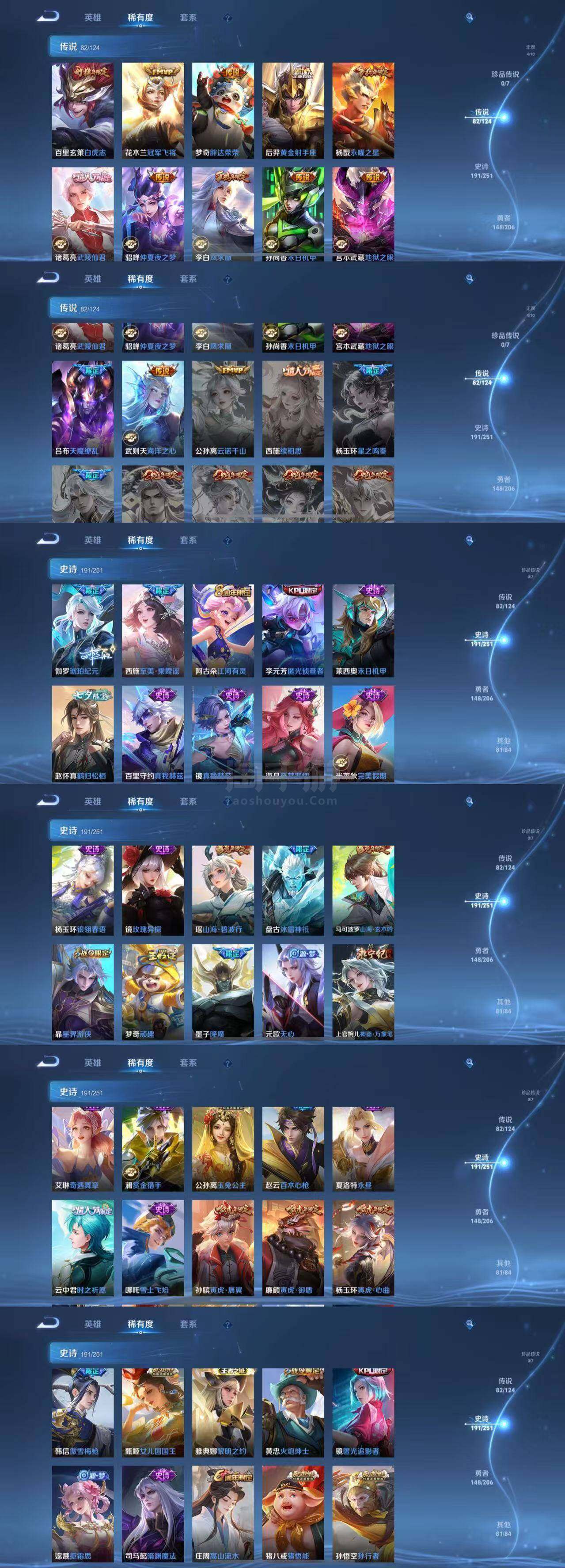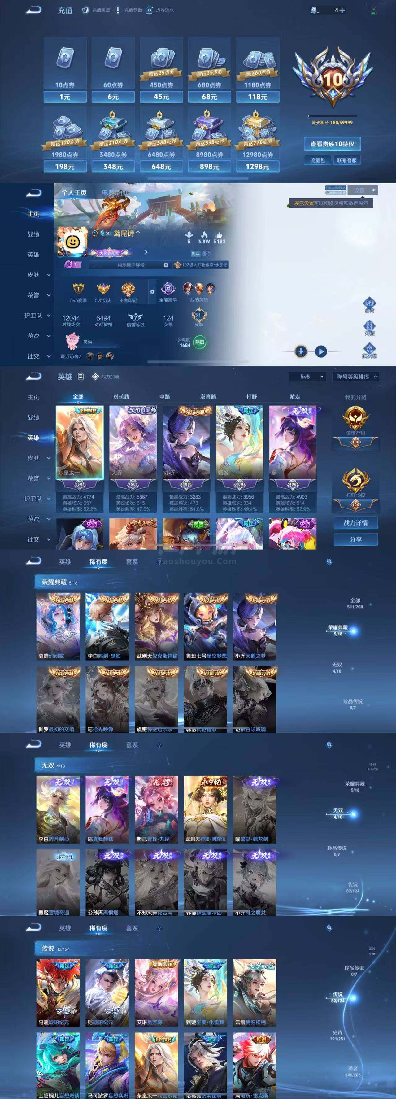 【商品标题】:苹果Q-V10-124英雄-511皮肤-6典藏-4无双-0珍品传说-82传说-183史诗-300