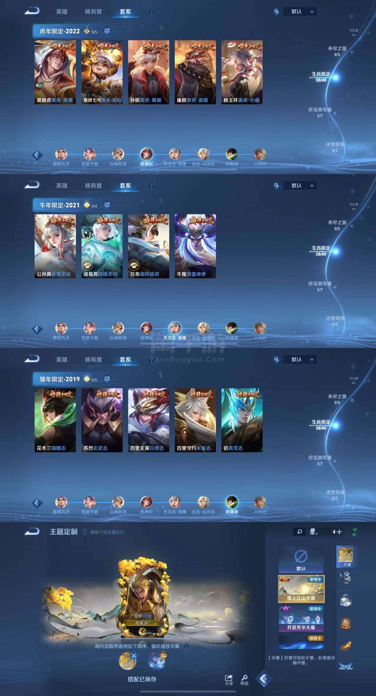 王者荣耀【苹果QQ】CD7680 可二次【女号(有紫瑶)战力游走法师英雄-兔年虎年牛年猪年限定全套