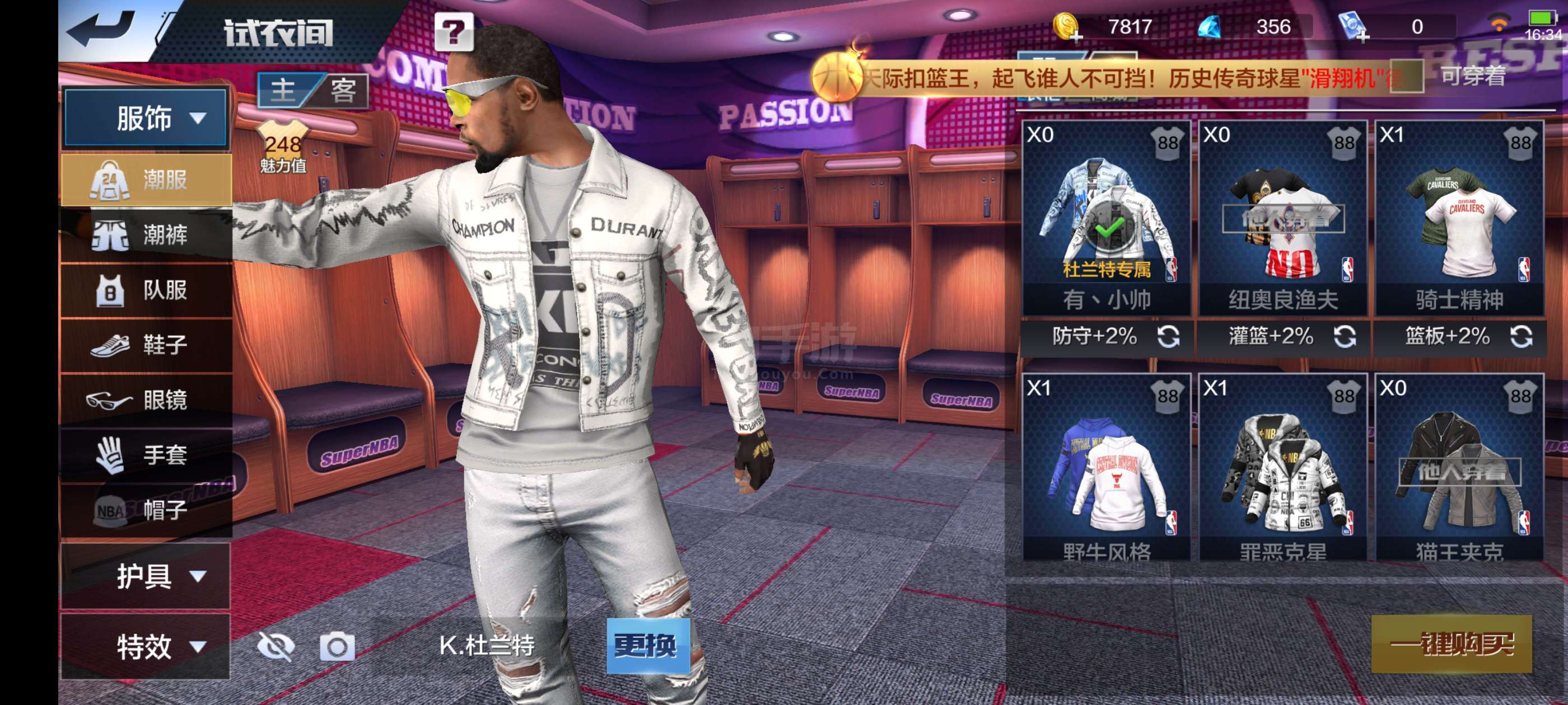 最强NBA天选杜兰特天选网杜特效潮服全满球探带一堆点券