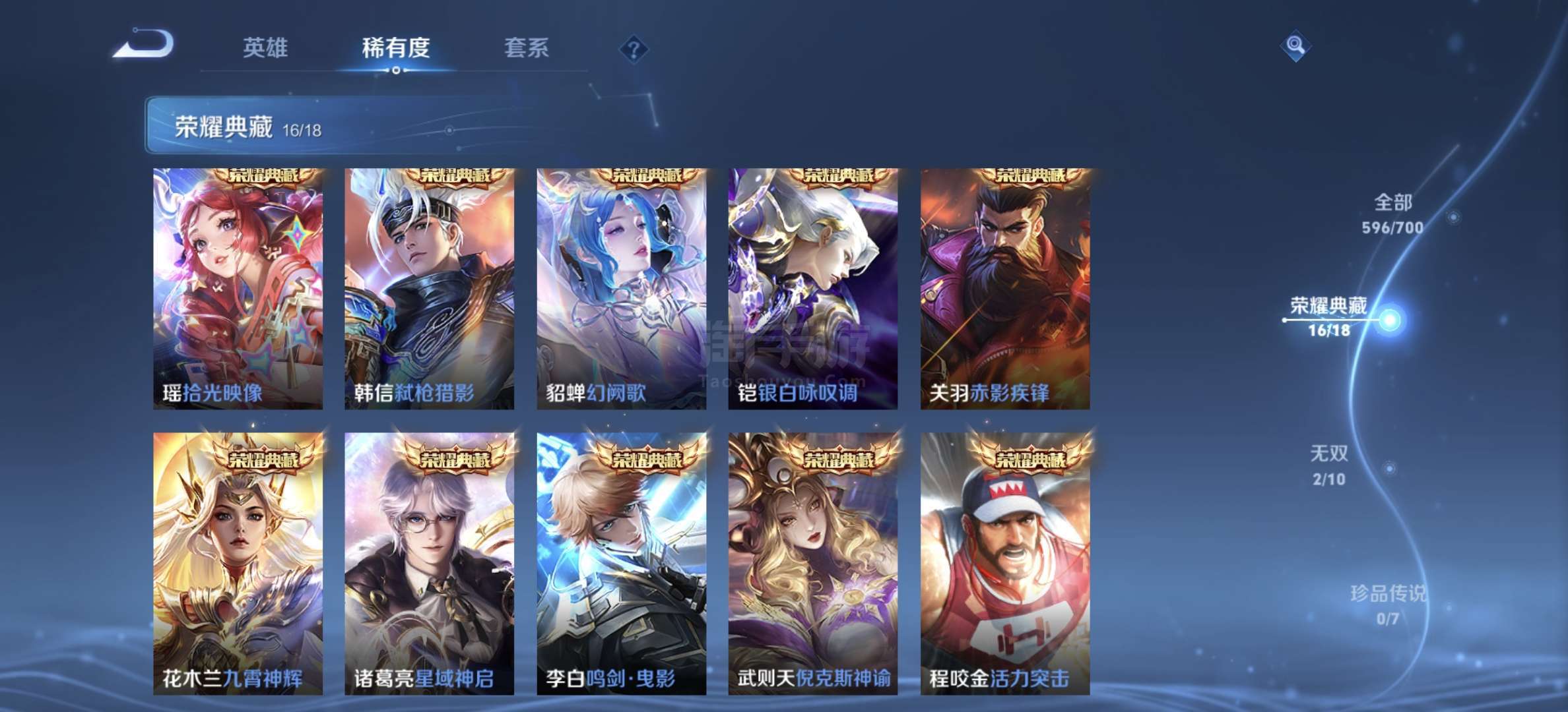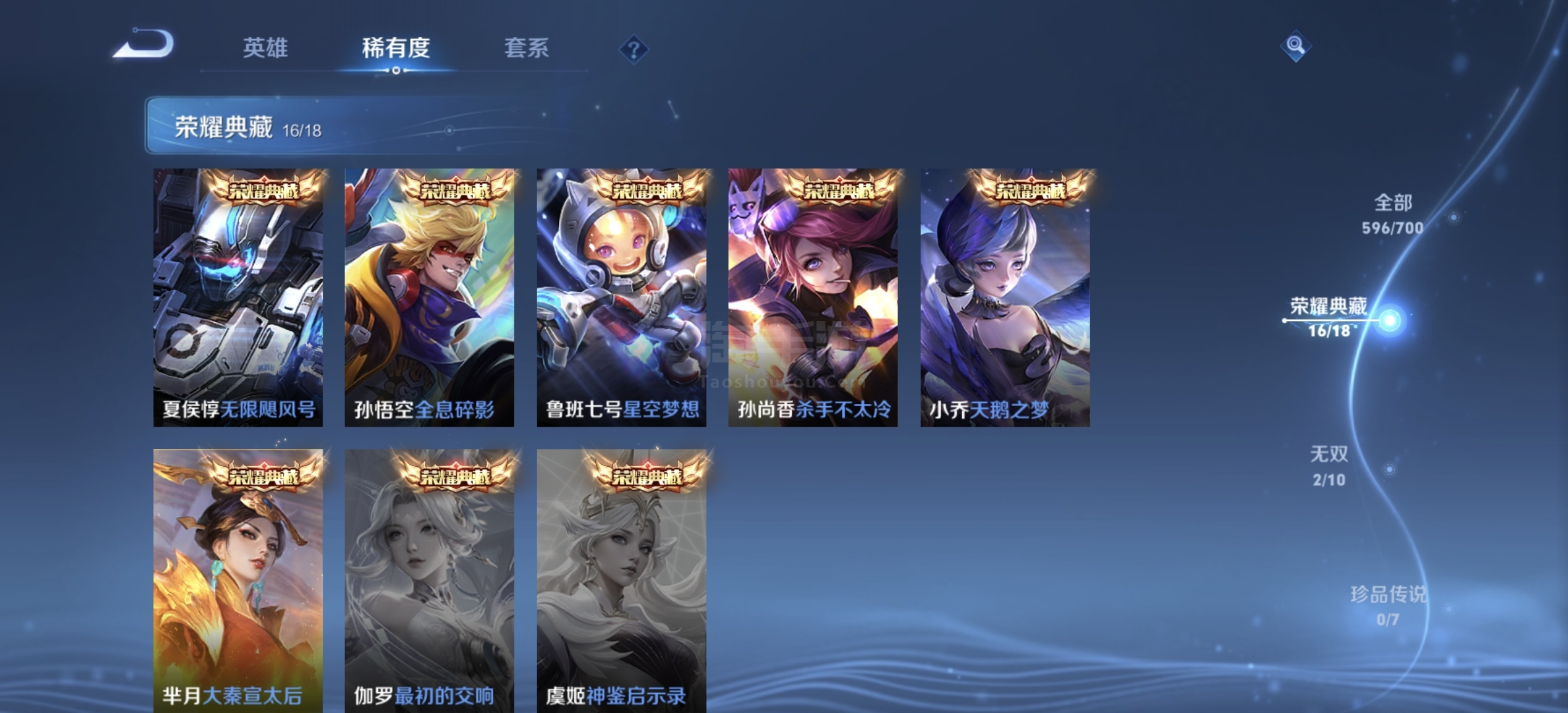 611皮肤 18颗荣耀典藏,换了17个,背包还有一颗;可正常游戏,可二次实名,10个星传