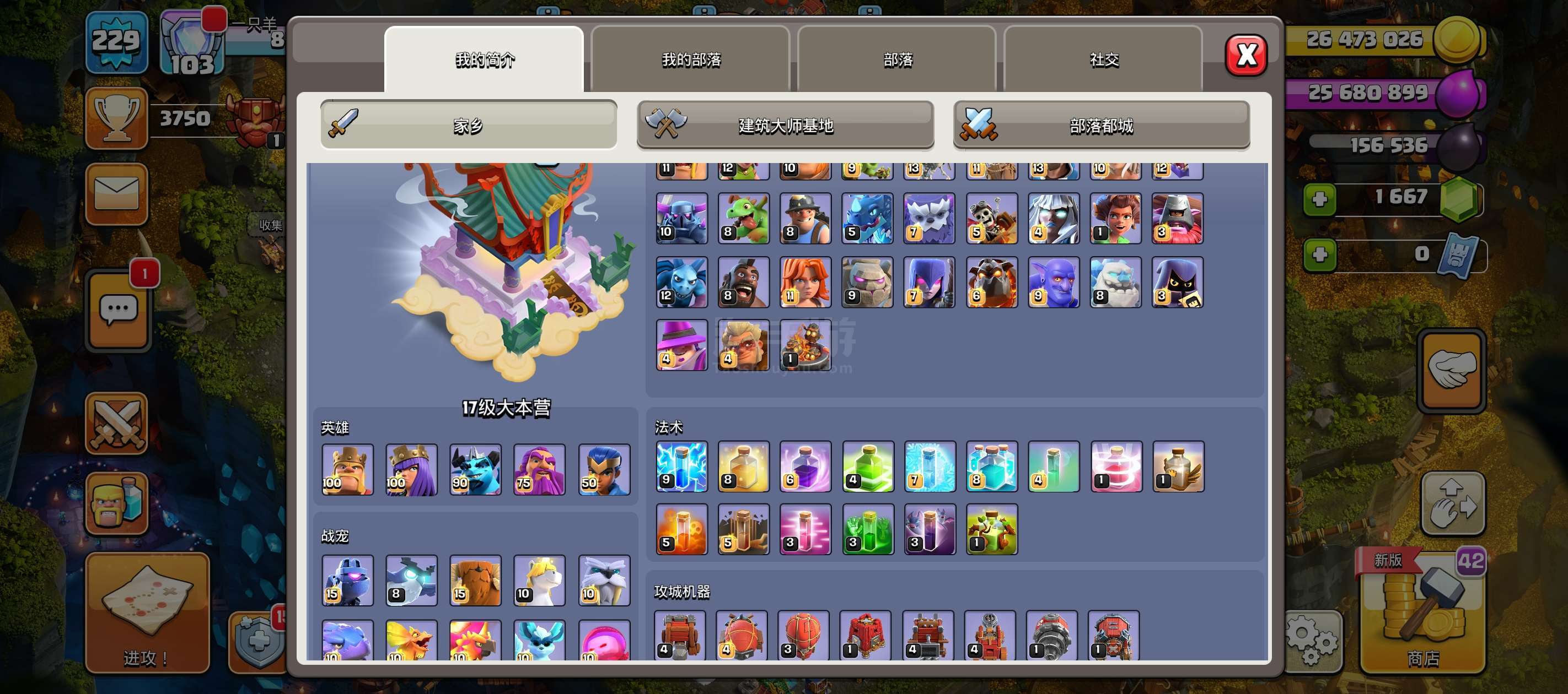 部落冲突【安卓QQ】17本满房差点陷阱和充能。