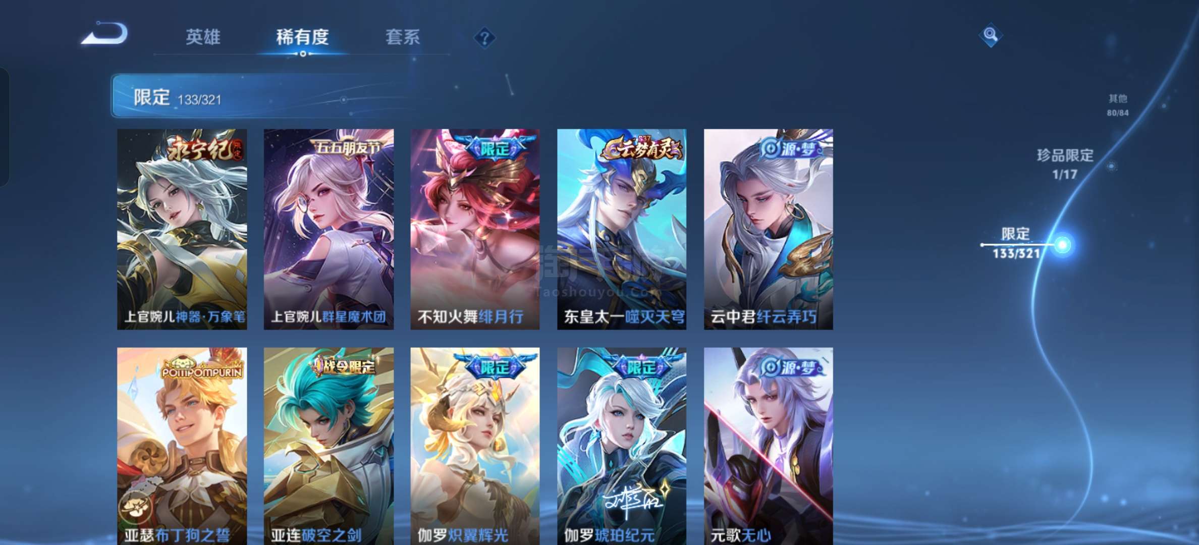 V10 满典藏,包里还有个荣耀水晶,带八千多点券,1无双,66传说。有财神天幕。