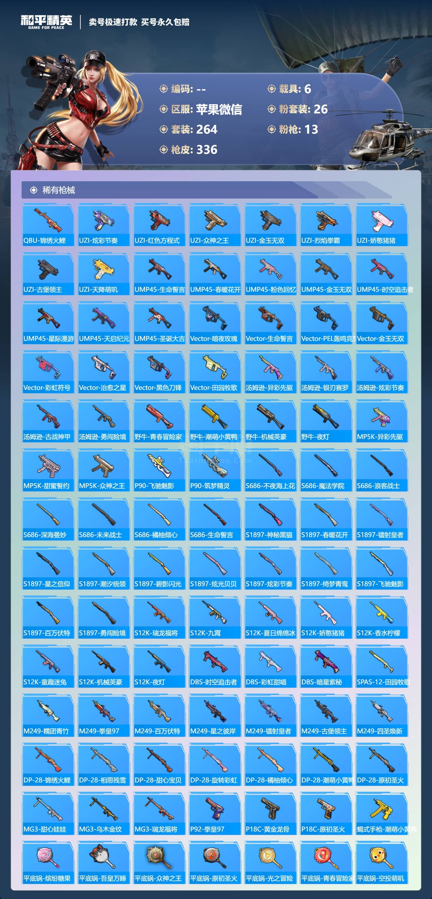 a3411/苹果微/双字ID/-18王牌印记-26粉装-13特效枪-6载具-131167热力值