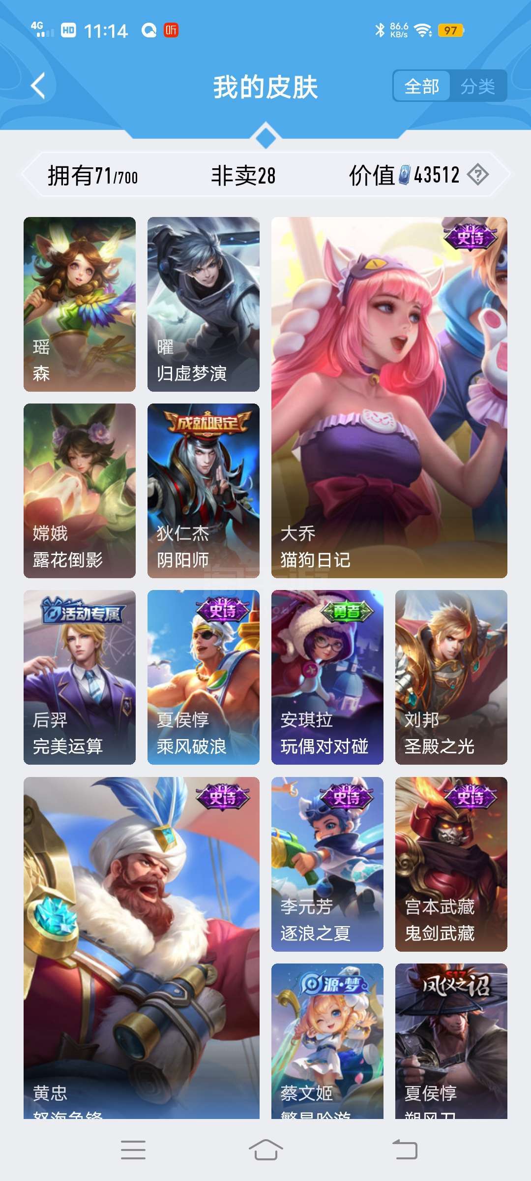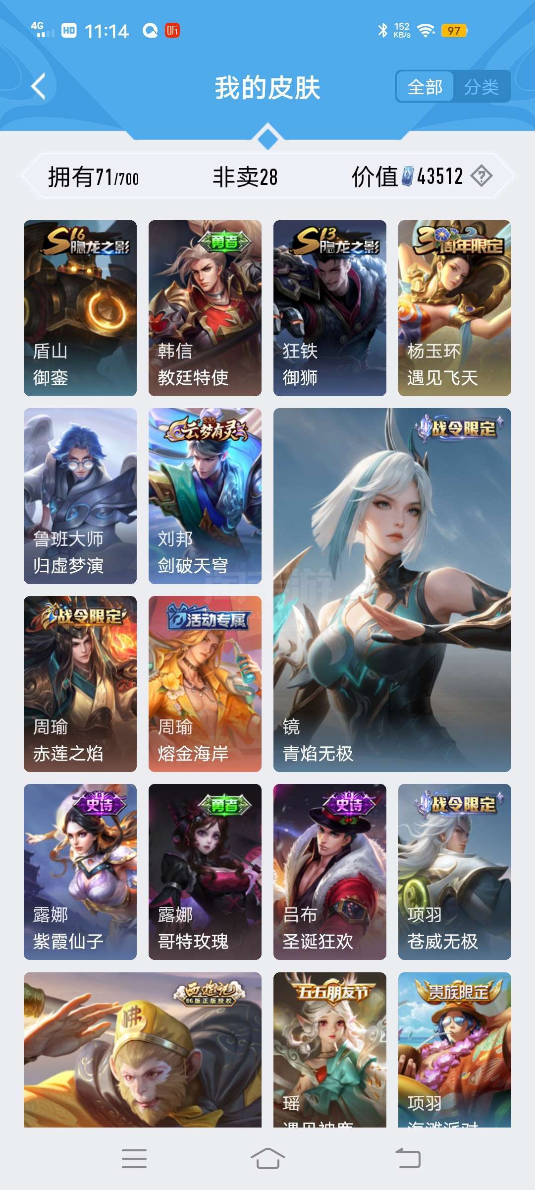 账号便宜皮肤多打野号