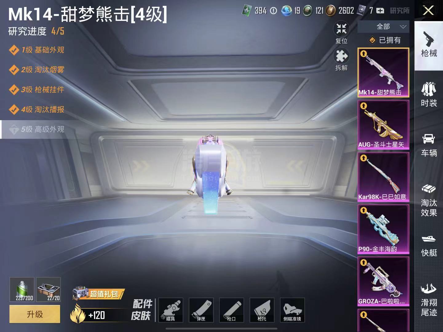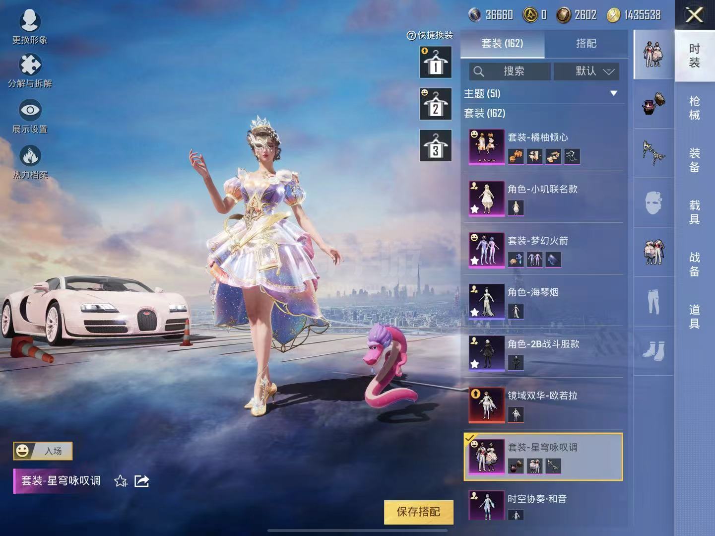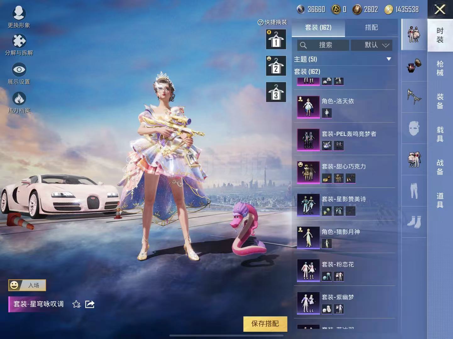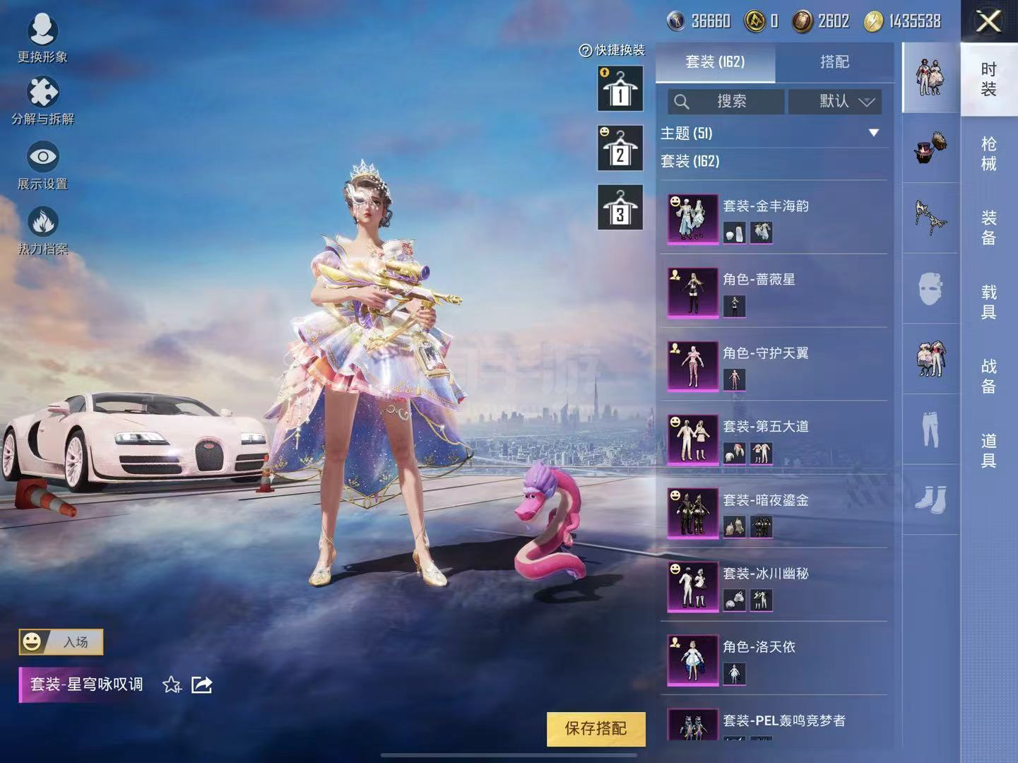 满级车布加迪威龙,红装.欧若拉,10粉枪,1红装,7车皮,3红车,14粉装