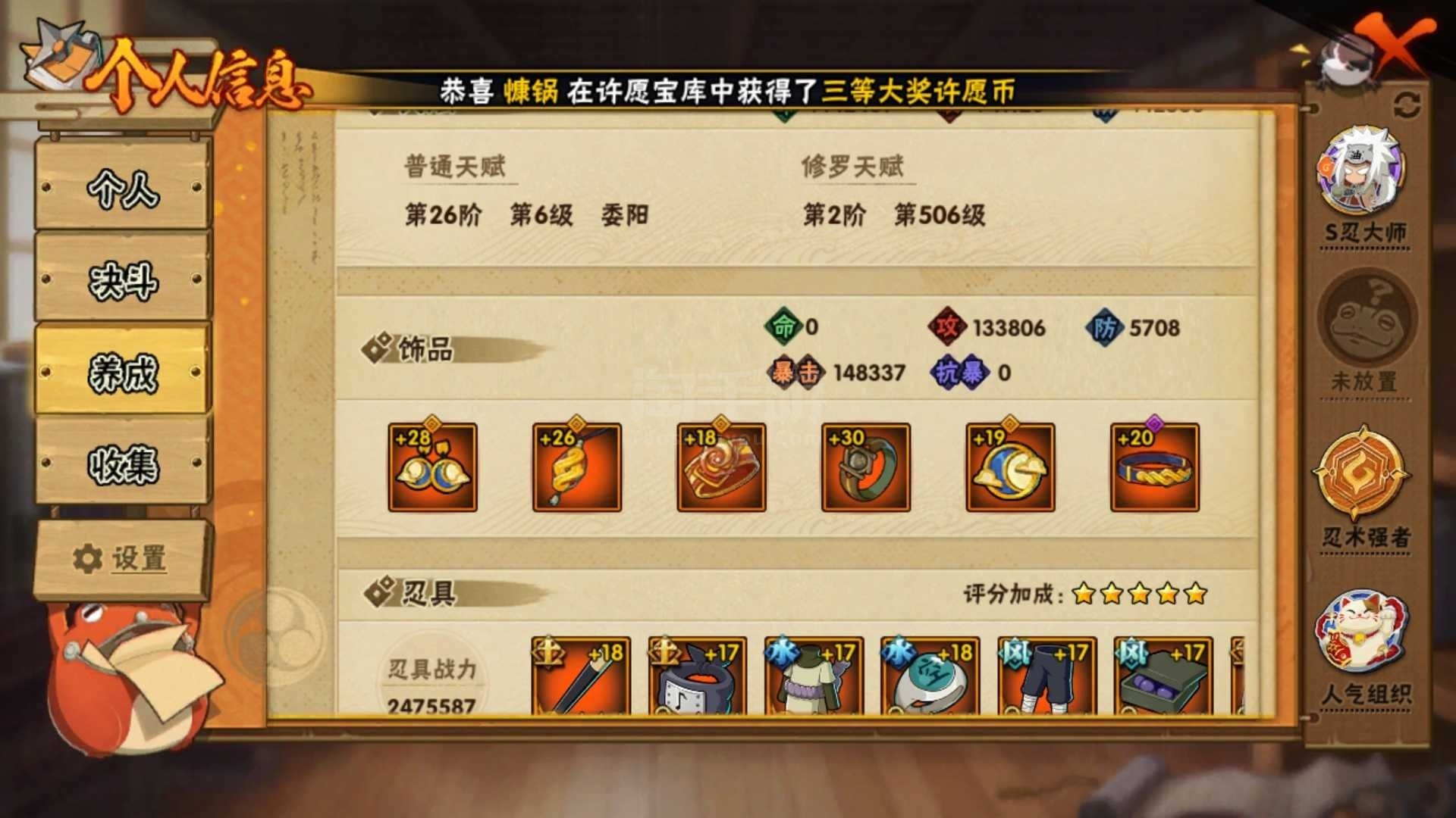 25s,30a。王者火影一体号,王者v8,300皮。不可二次,可刀