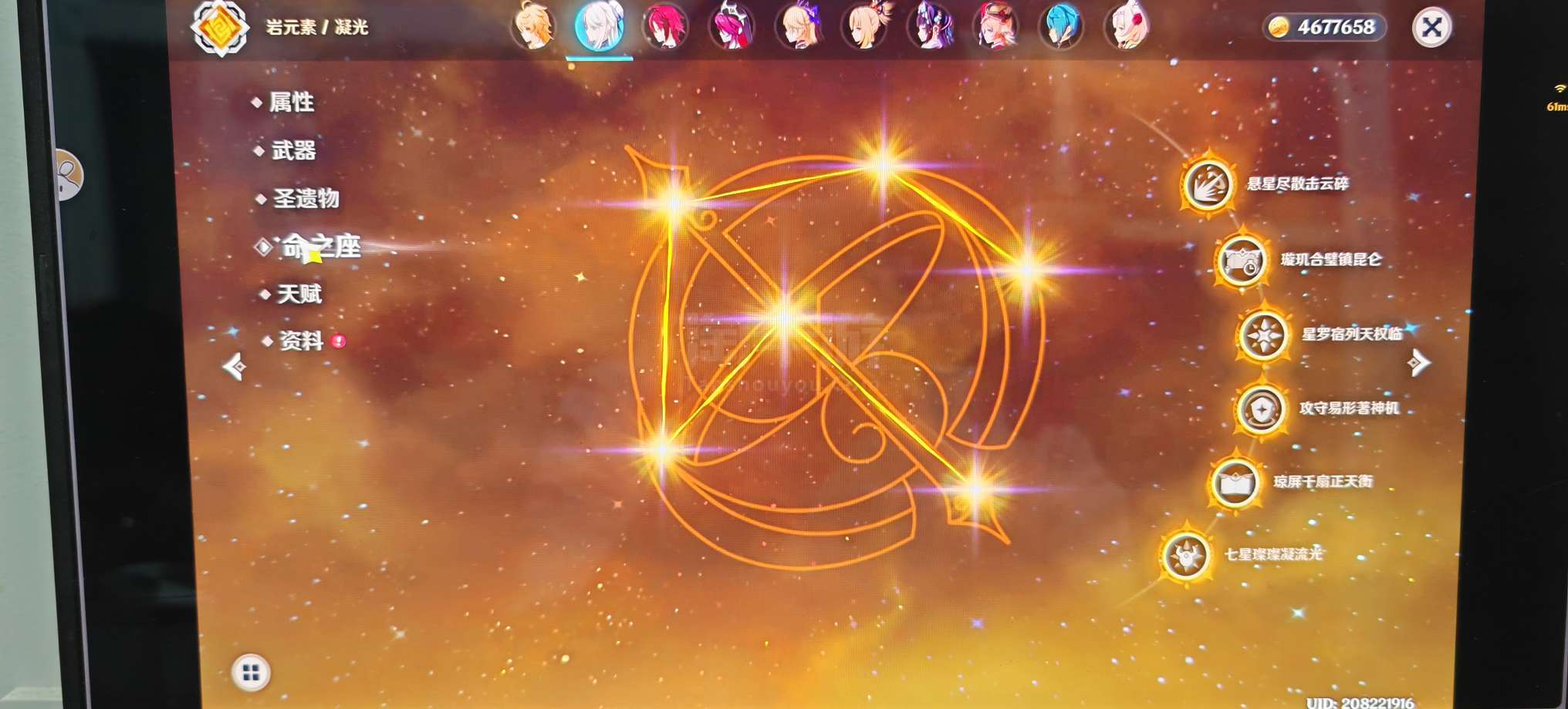 优菈+莫娜+钟离+一命赛诺+霄宫+四命班尼特+满命凝光