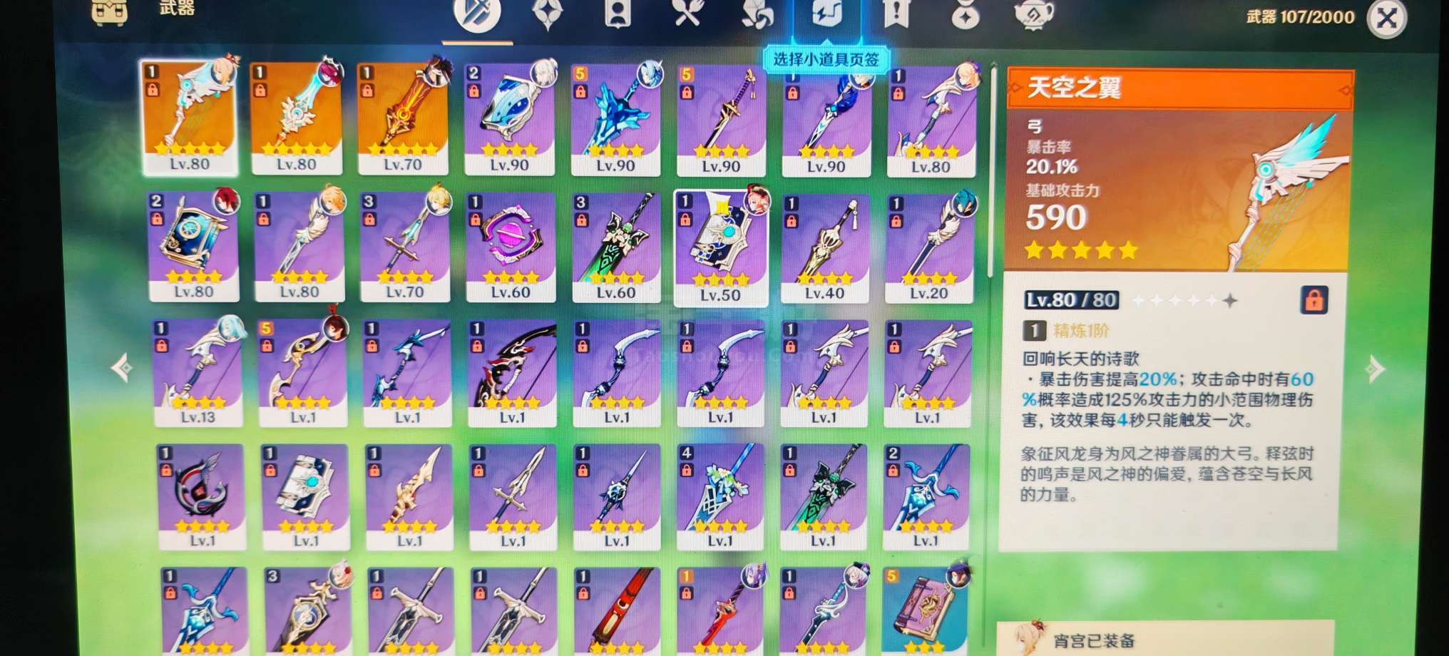 优菈+莫娜+钟离+一命赛诺带专武+霄宫+四命班尼特+满命凝光三命行秋+天空之翼天空之脊,便宜卖