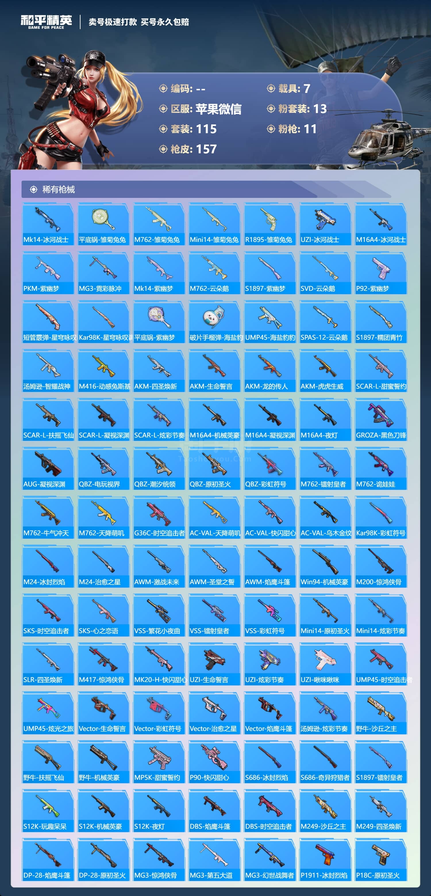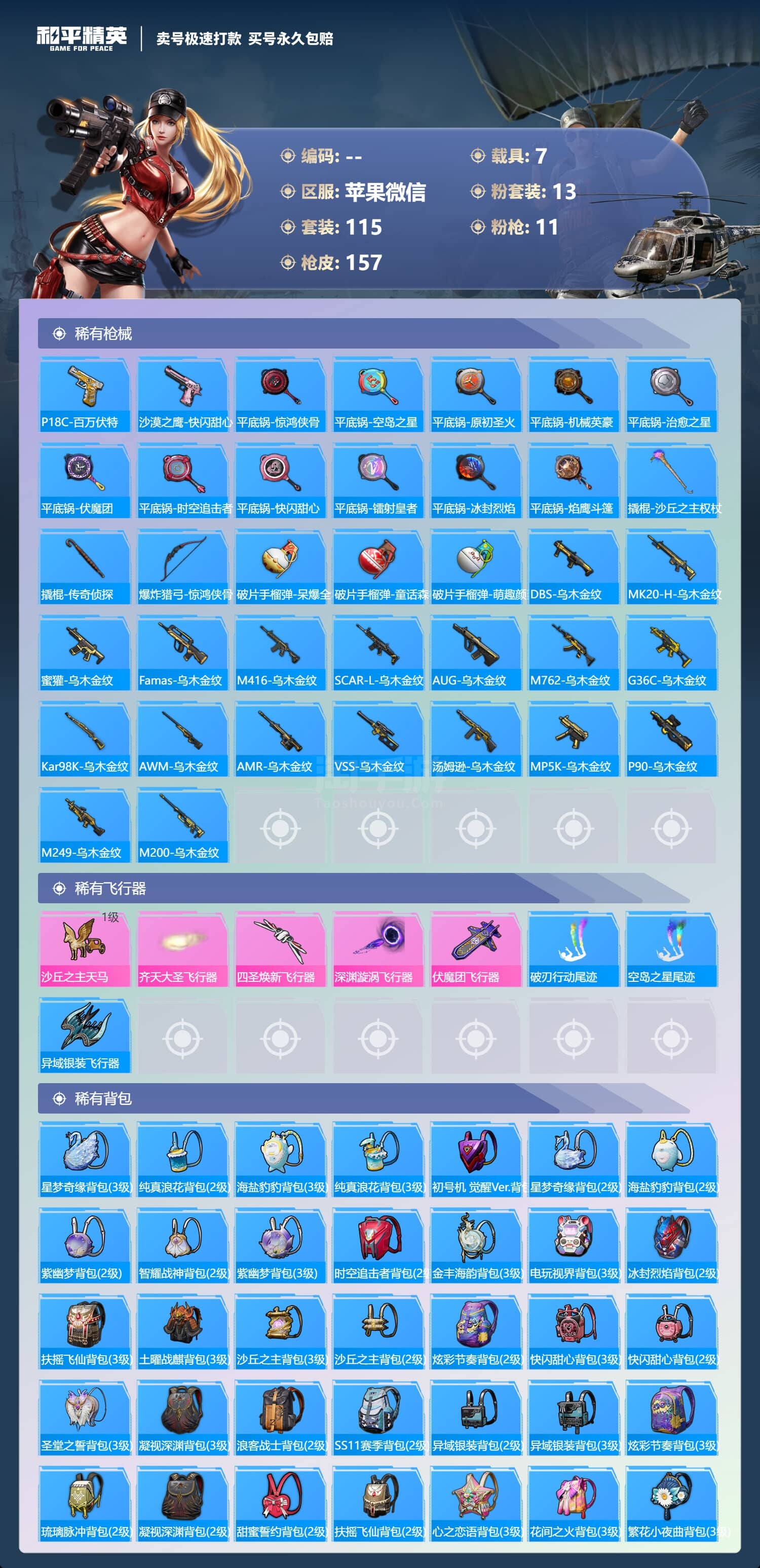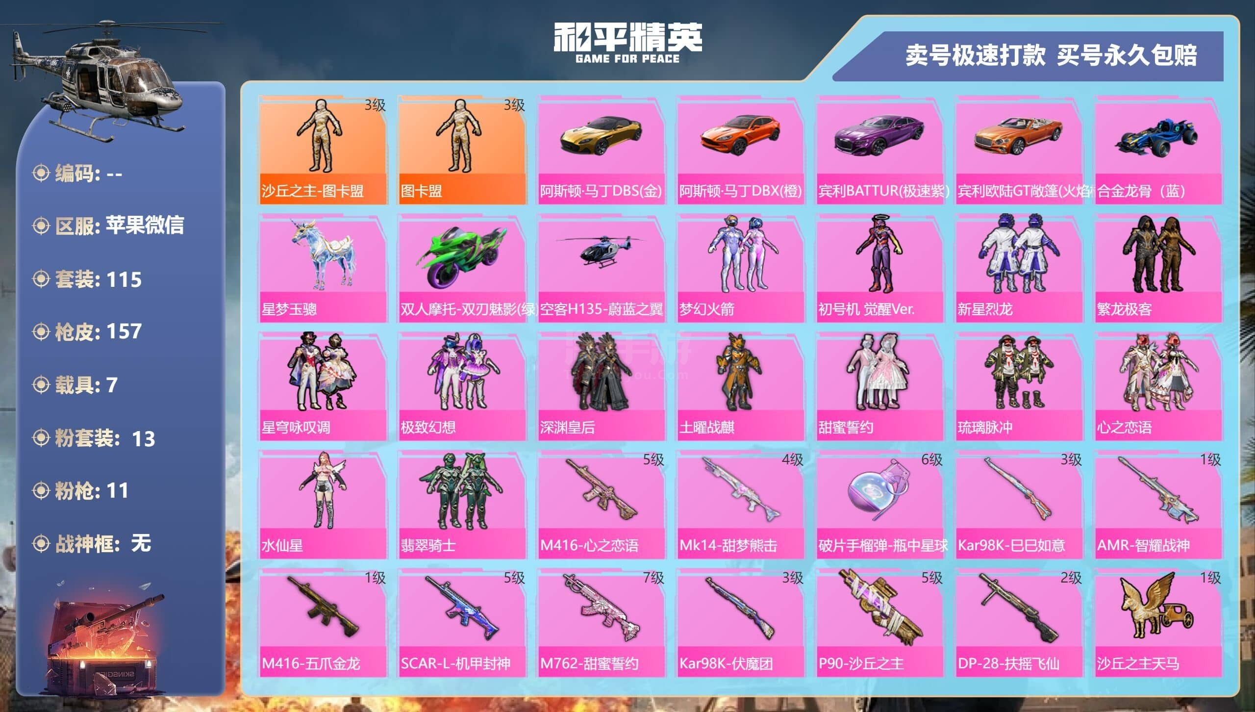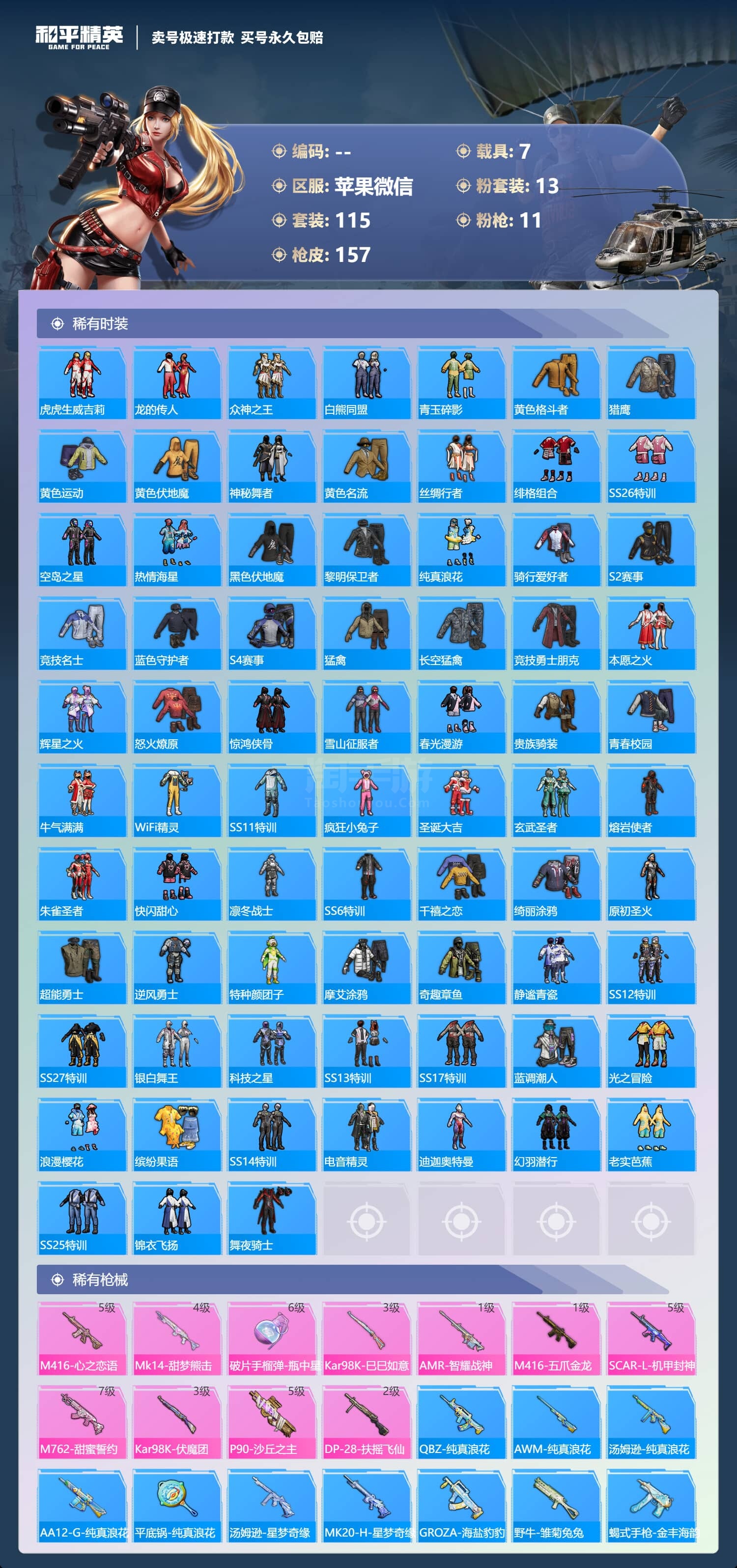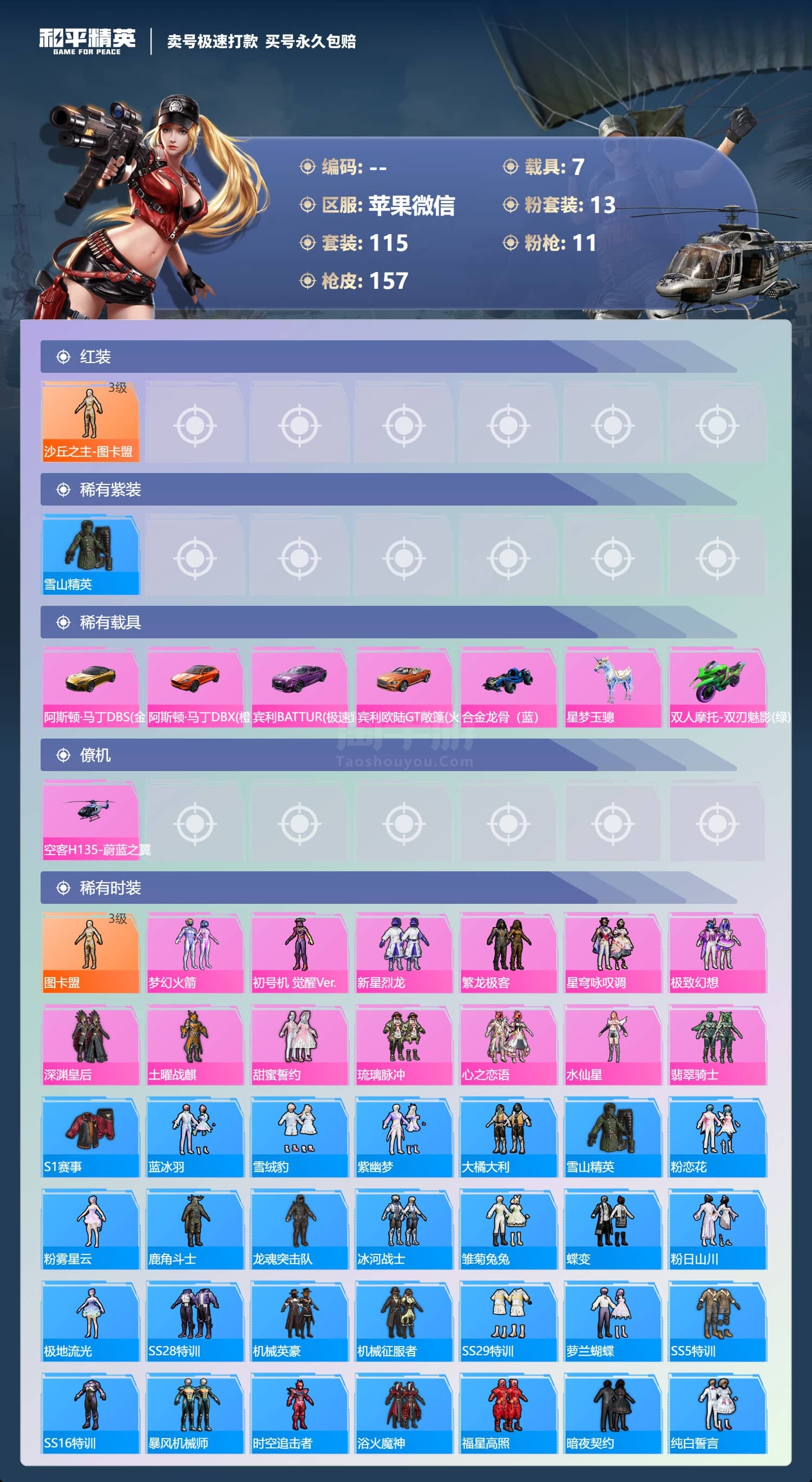 a3447/苹果微/S1赛事套装/-9王牌印记-13粉装-11特效枪-7载具-68590热力值-1