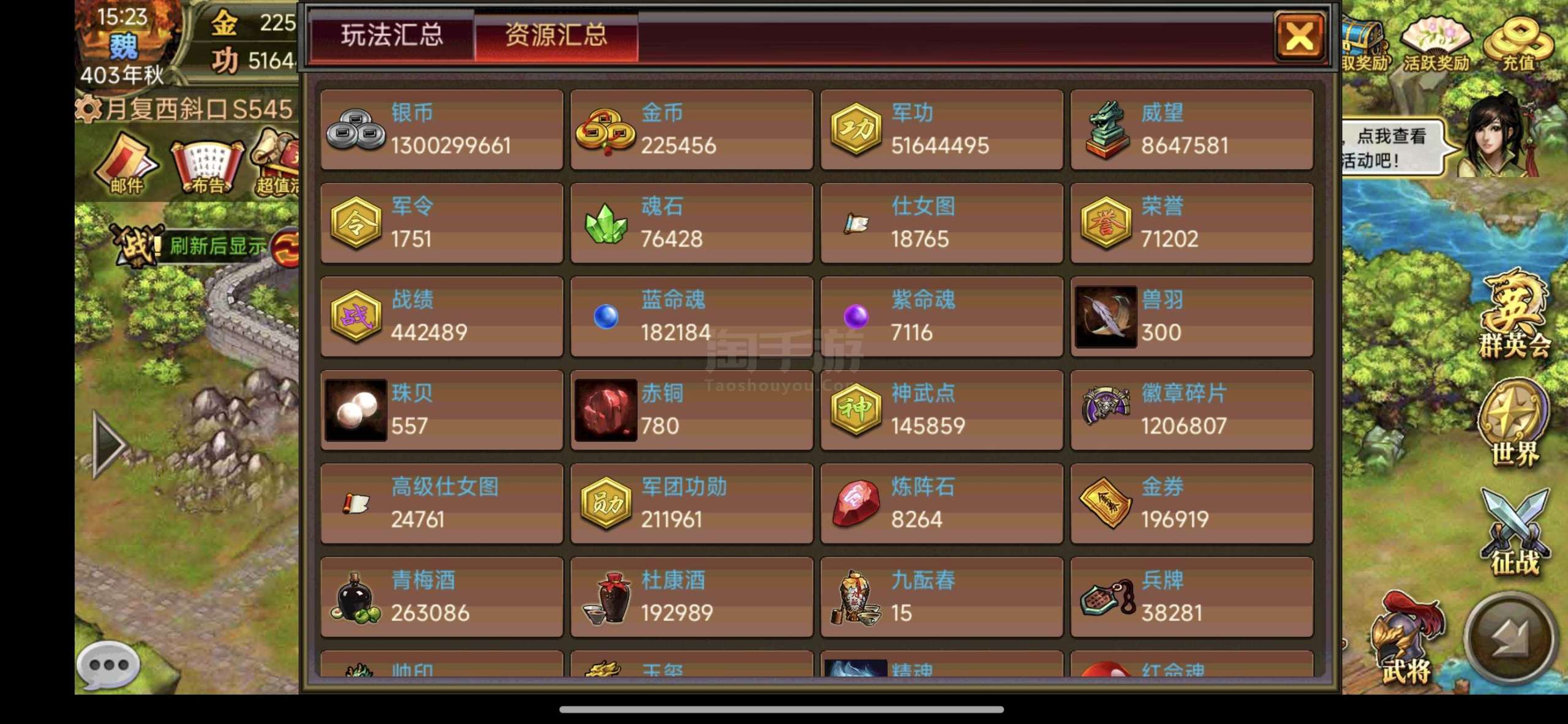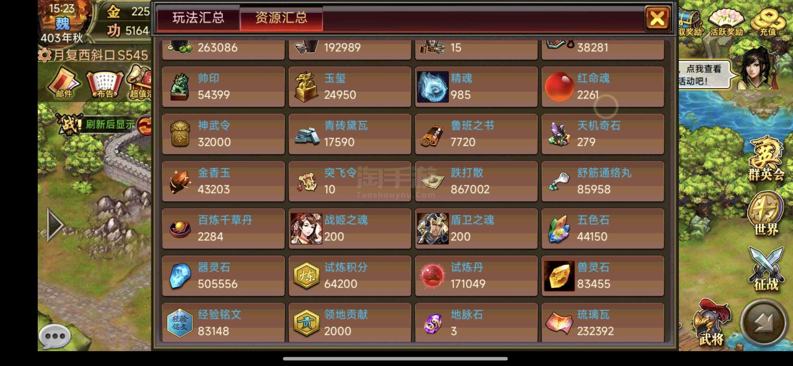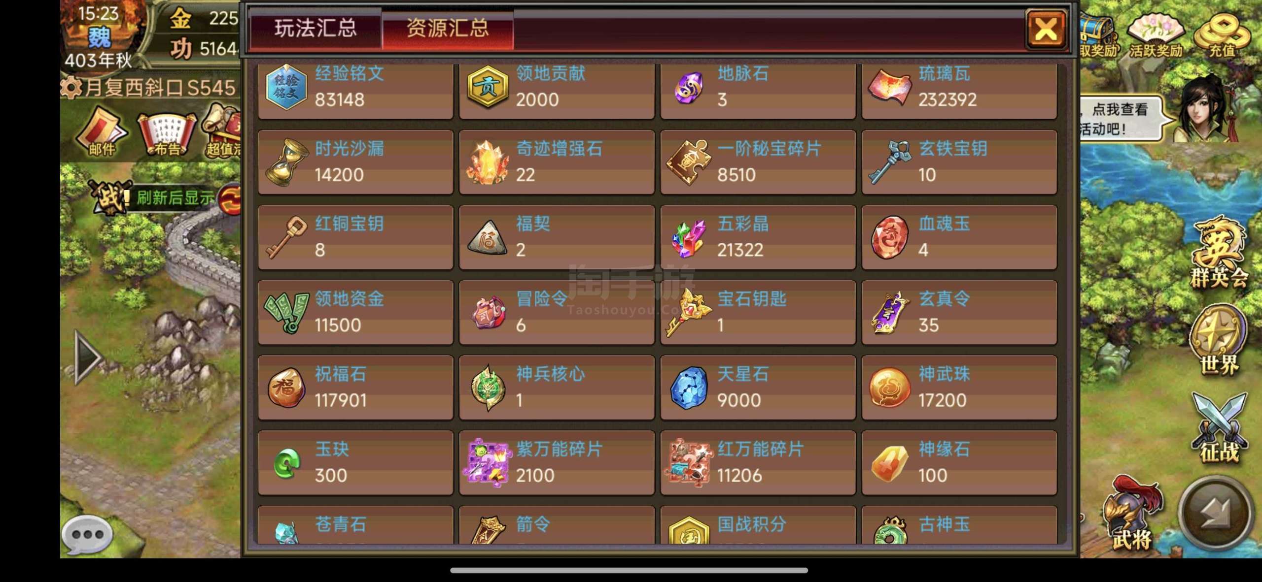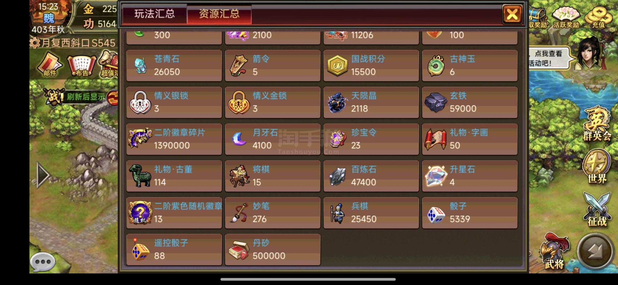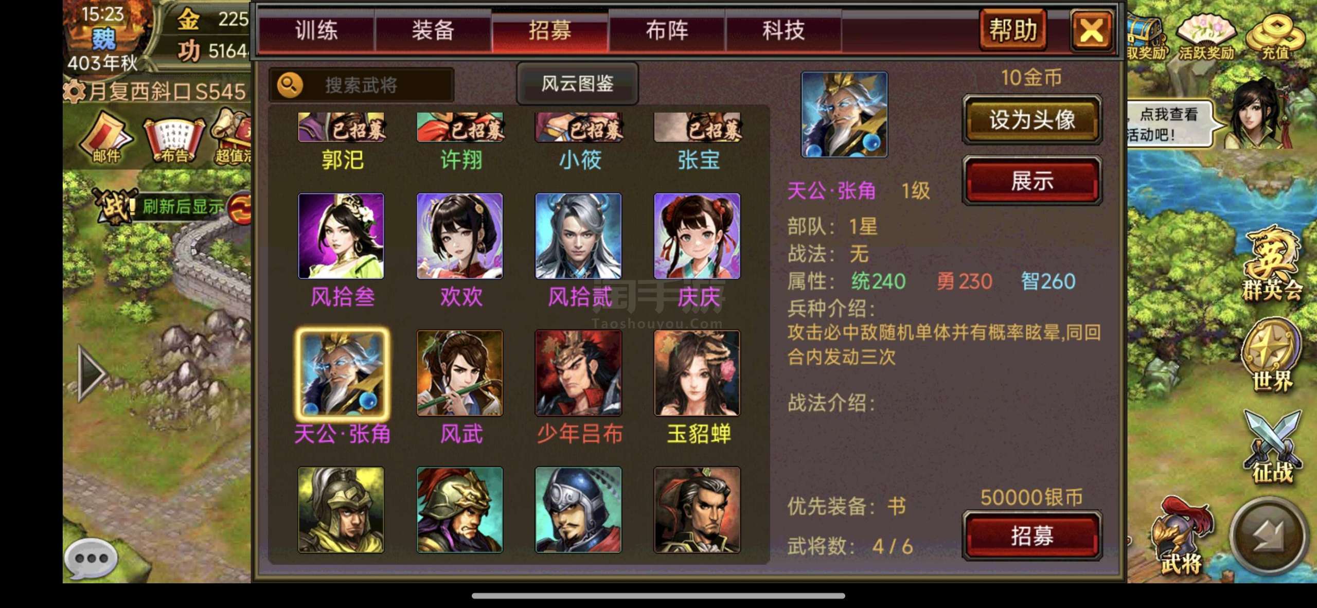 风云天下OL【安卓官方】还价勿扰,545区40级号,金22.5万,自带15万神将天公张角,小势力