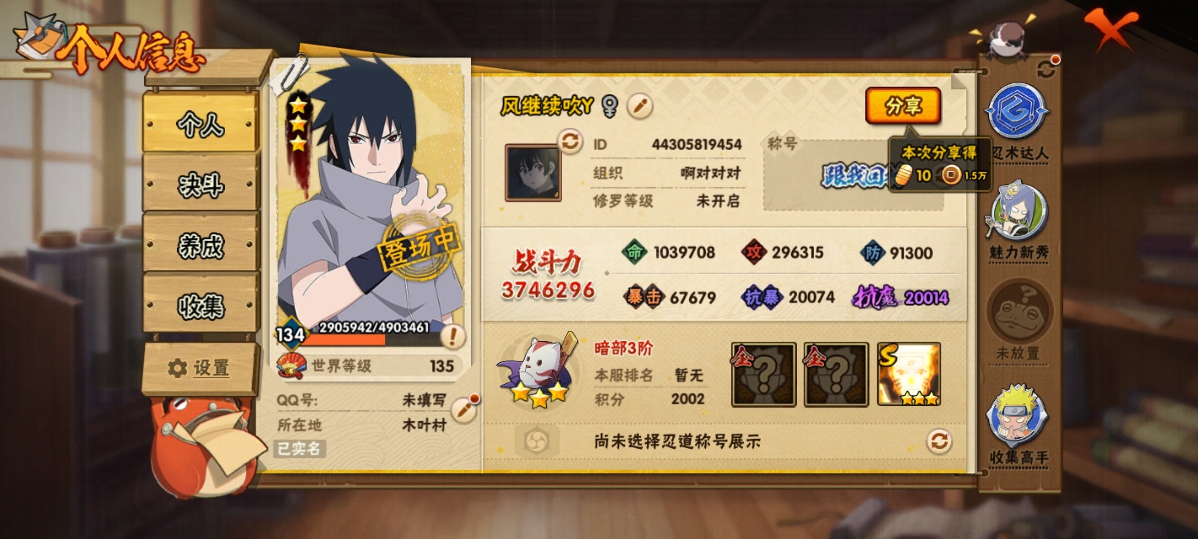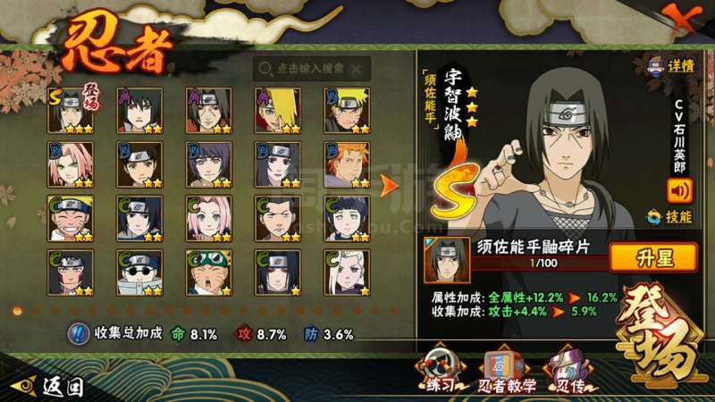 火影忍者【安卓QQ】 【商品标题】:6S级忍者数-15A级忍者数【S级忍者】: