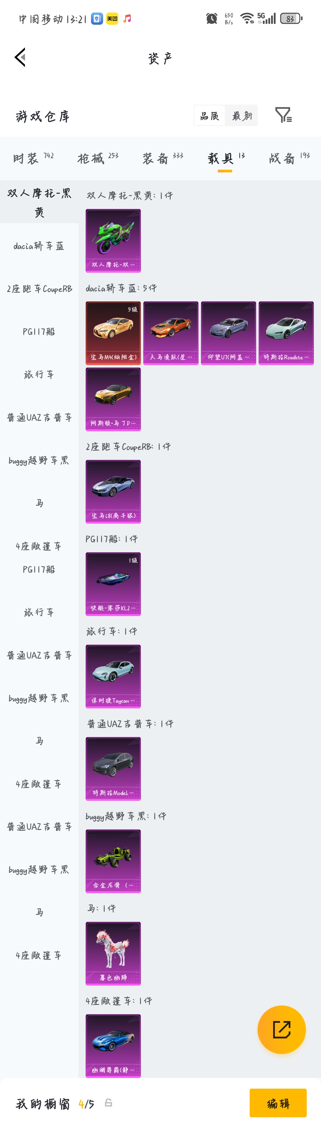 金色的轿车皮肤本人不玩了,游戏内砸了近五个W,低价出售了