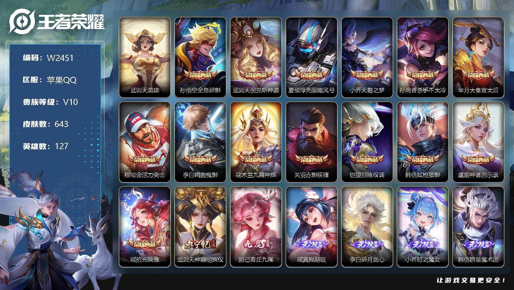 极品贵族10账号,553皮肤,5典藏,77传说,4珍品,4无双,191史诗,226限定,可二次可小刀