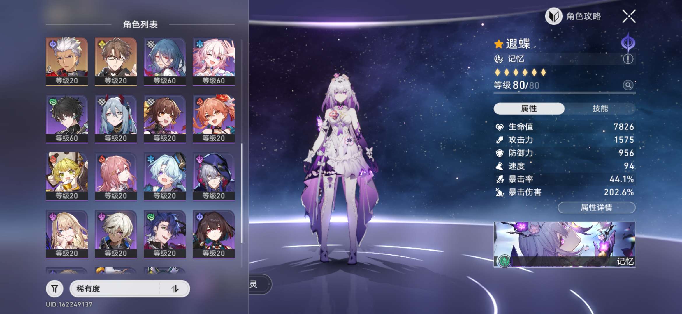 官服70级女主 01瑕蝶 00昔涟 00长夜月10风堇 10提宝 01阿格莱亚 00星期日