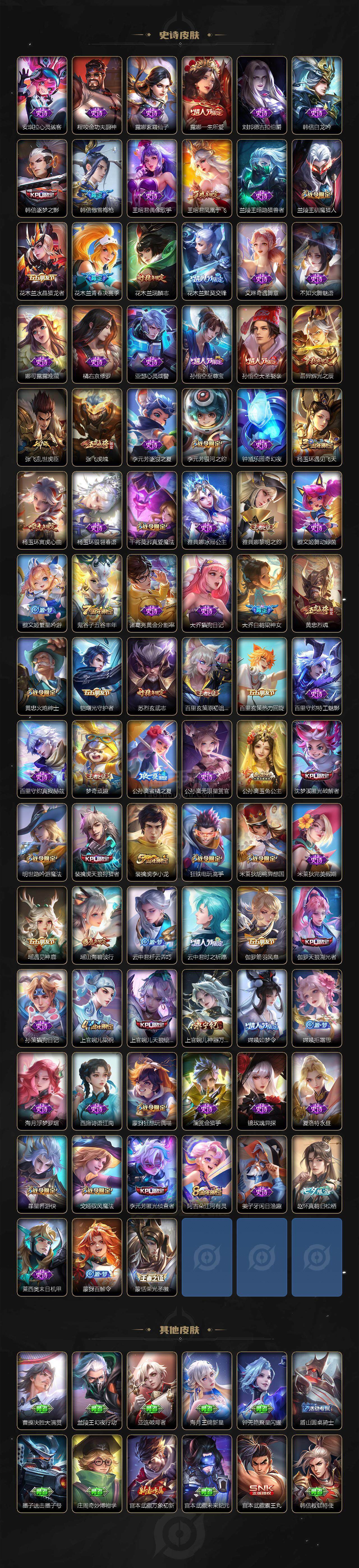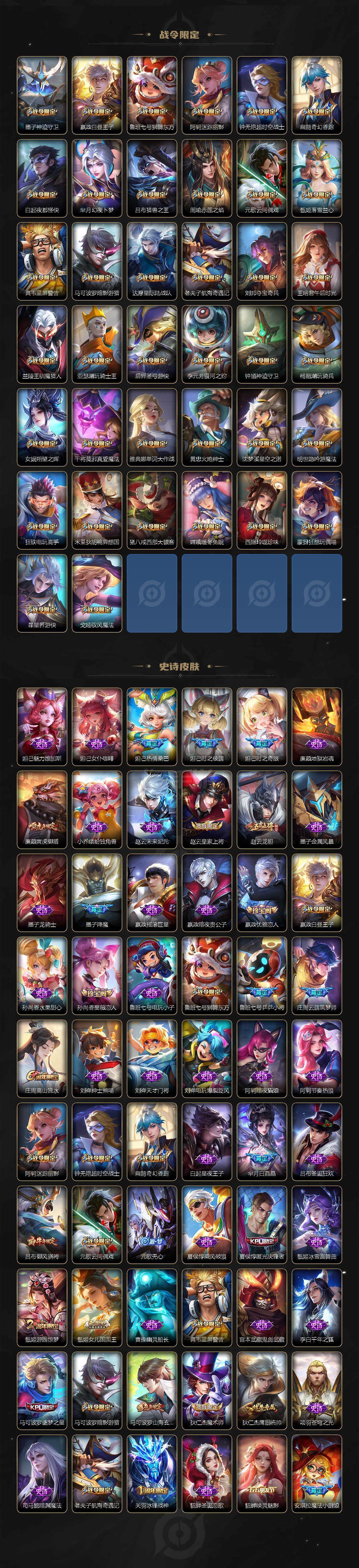 【传说皮肤】:小乔山海琳琅生,赵云淬星耀世,孙尚香末日机甲,孙尚香异界灵契,鲁班七号寅虎瑞焰,鲁