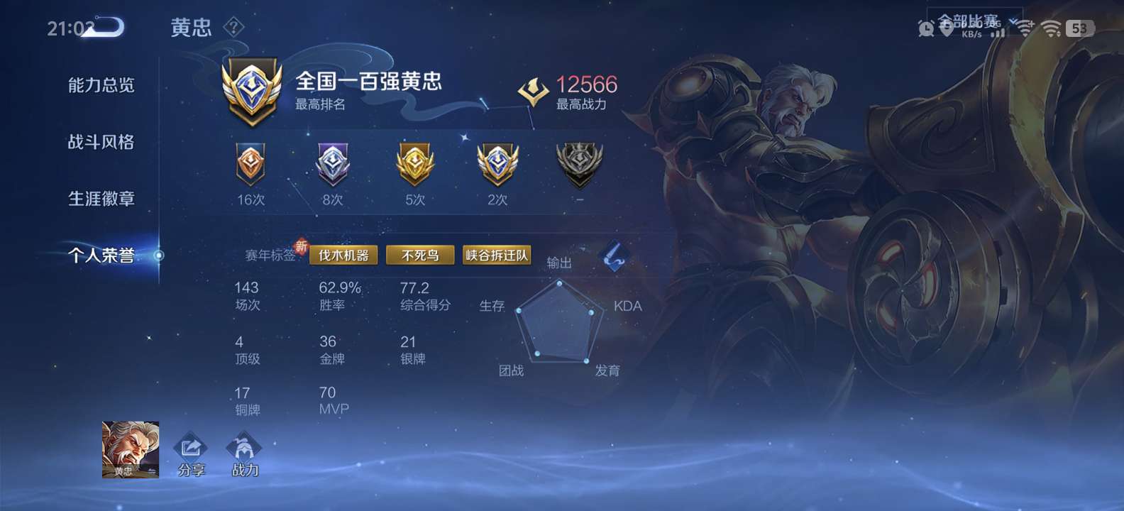 历史传奇王者102星最高巅峰2109小国黄忠,省标韩信,高评分带妹号(可商量价格)