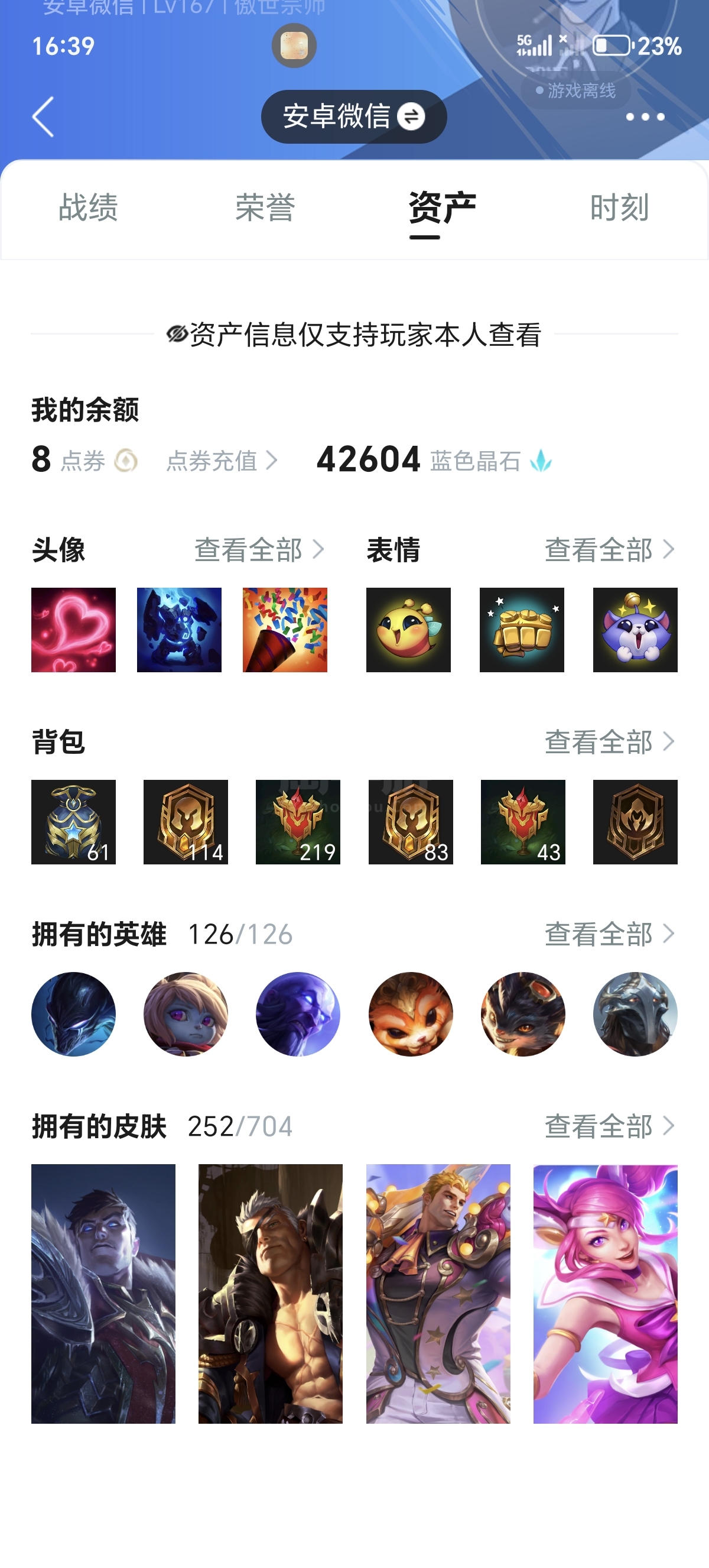 英雄联盟手游(lol)【安卓微信】英雄联盟手游账号,可刀,附带王者v7账号
