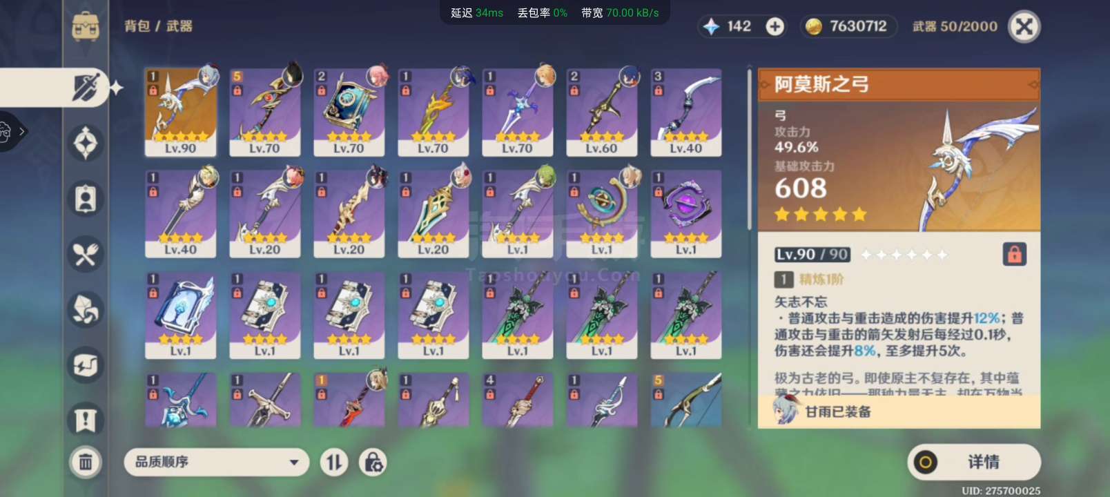 甘雨一命专武,提八配队提纳里八重神子,多树脂,送邮箱