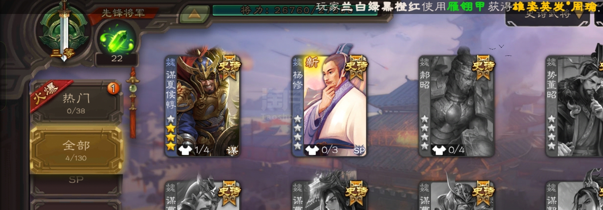 史诗武将数量:
