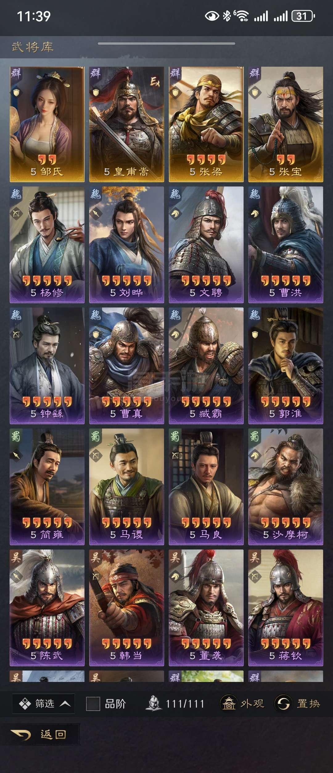 三国:谋定天下【安卓官方】武将,战法满图鉴,中红号,买了就赚,曹操2星,刘备2星。