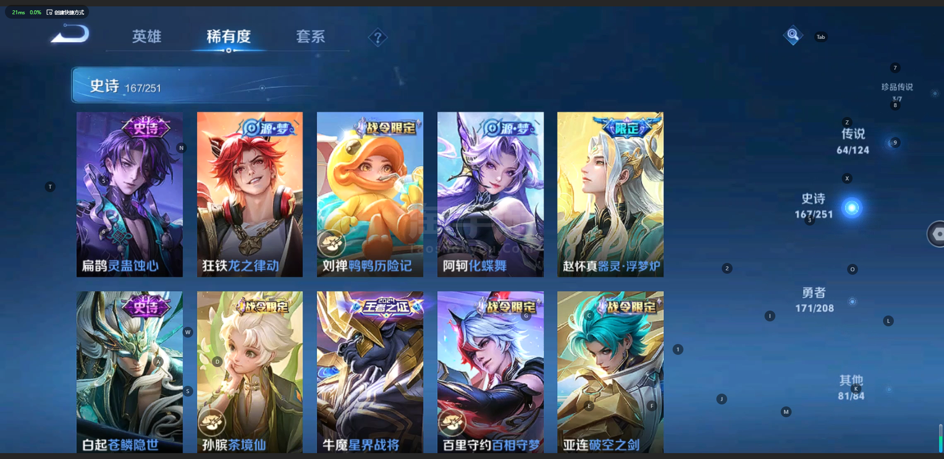 安卓q-V10精氪号,热门皮肤,新皮肤基本全。不议价