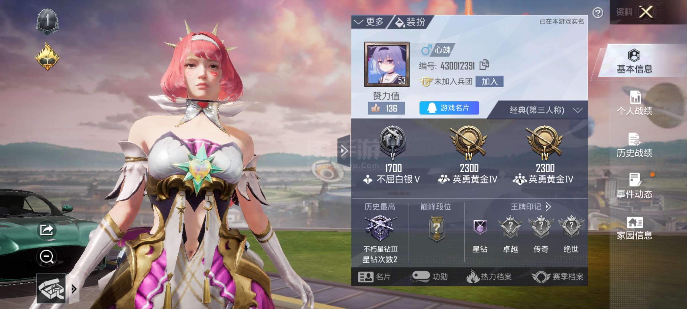 V10号9水晶4星元44传说,带和平精英2载具特效枪,退游安全,可二次实名