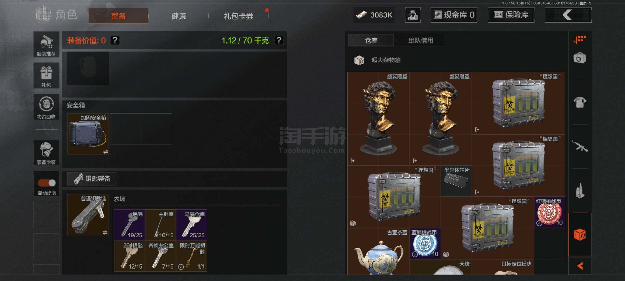 安Q可二次仓库价值95.8M币3083K很多机密文件,来战·开山刀,工兵铲,来