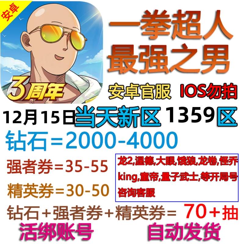 出售一拳超人:最强之男折扣号,全自助打折,支持任意区服,包括新区。你可以自己注册账号开通折扣