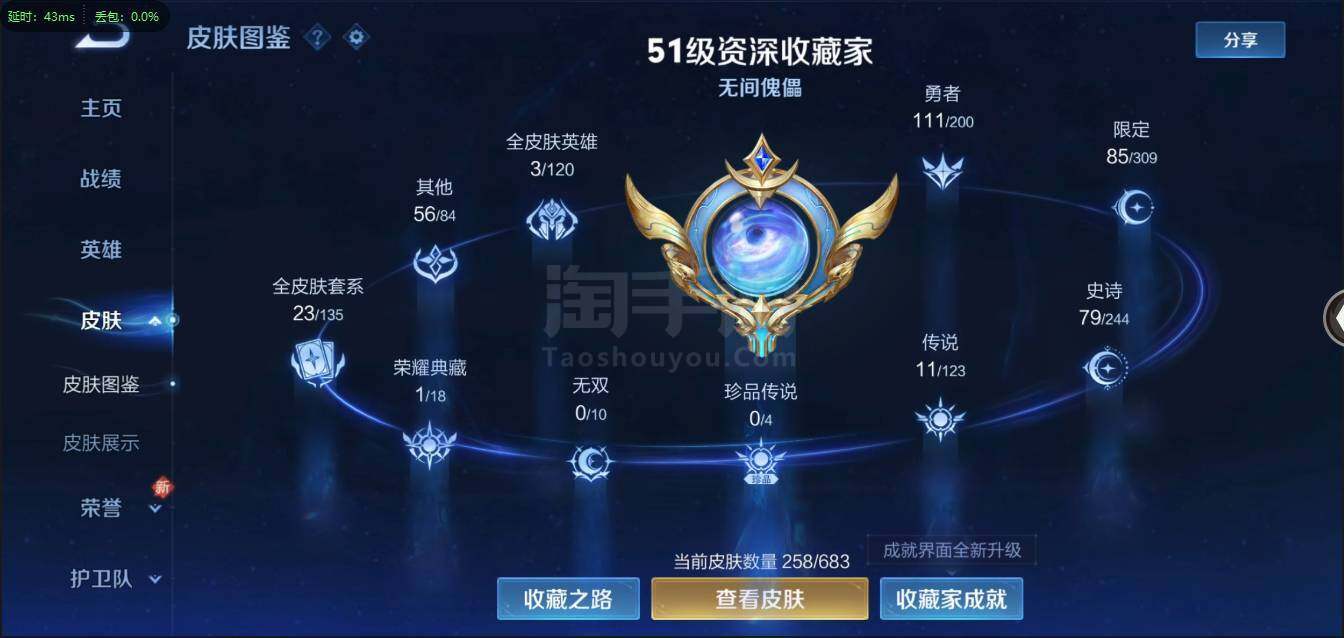王者荣耀【安卓QQ】【商品标题】:安卓Q-V0-永恒钻石I段位-119英雄-258皮肤-1典藏-0