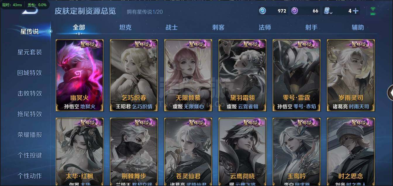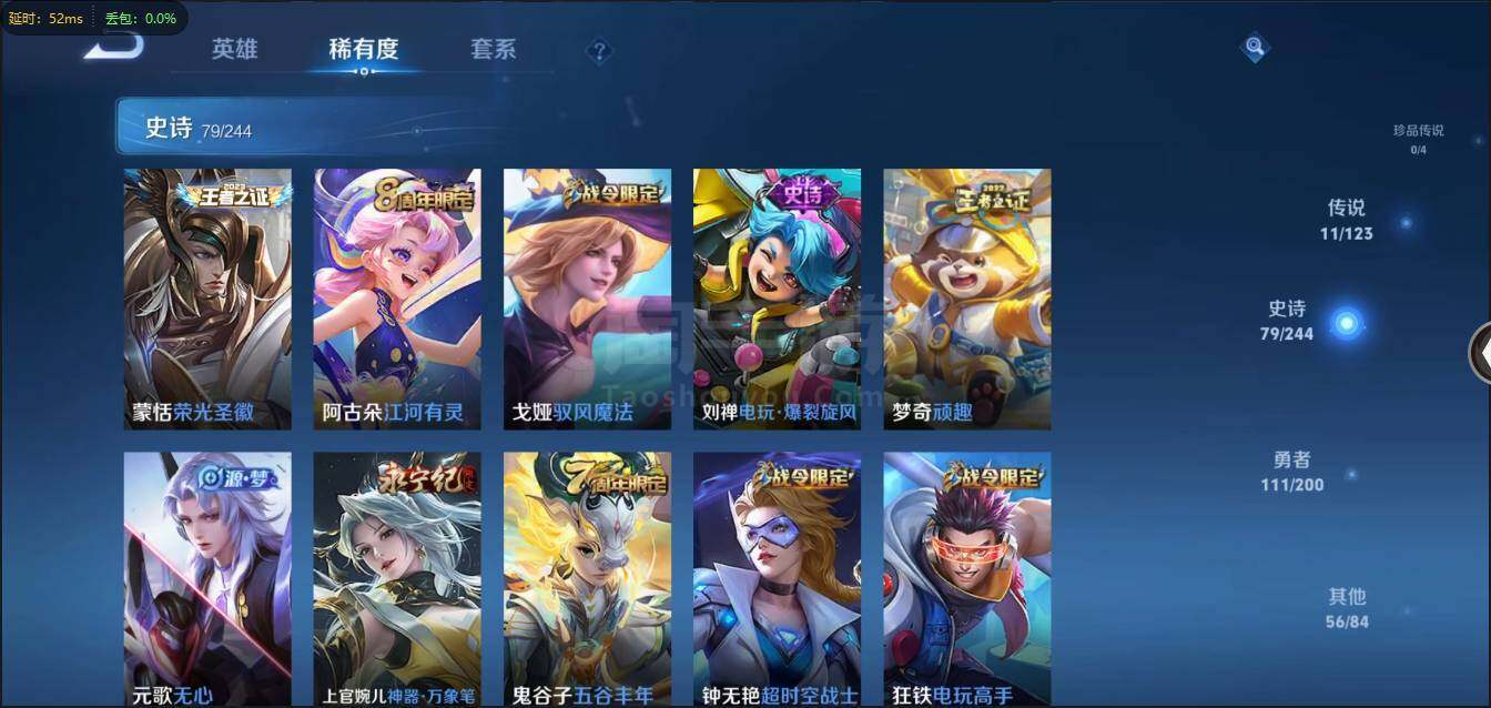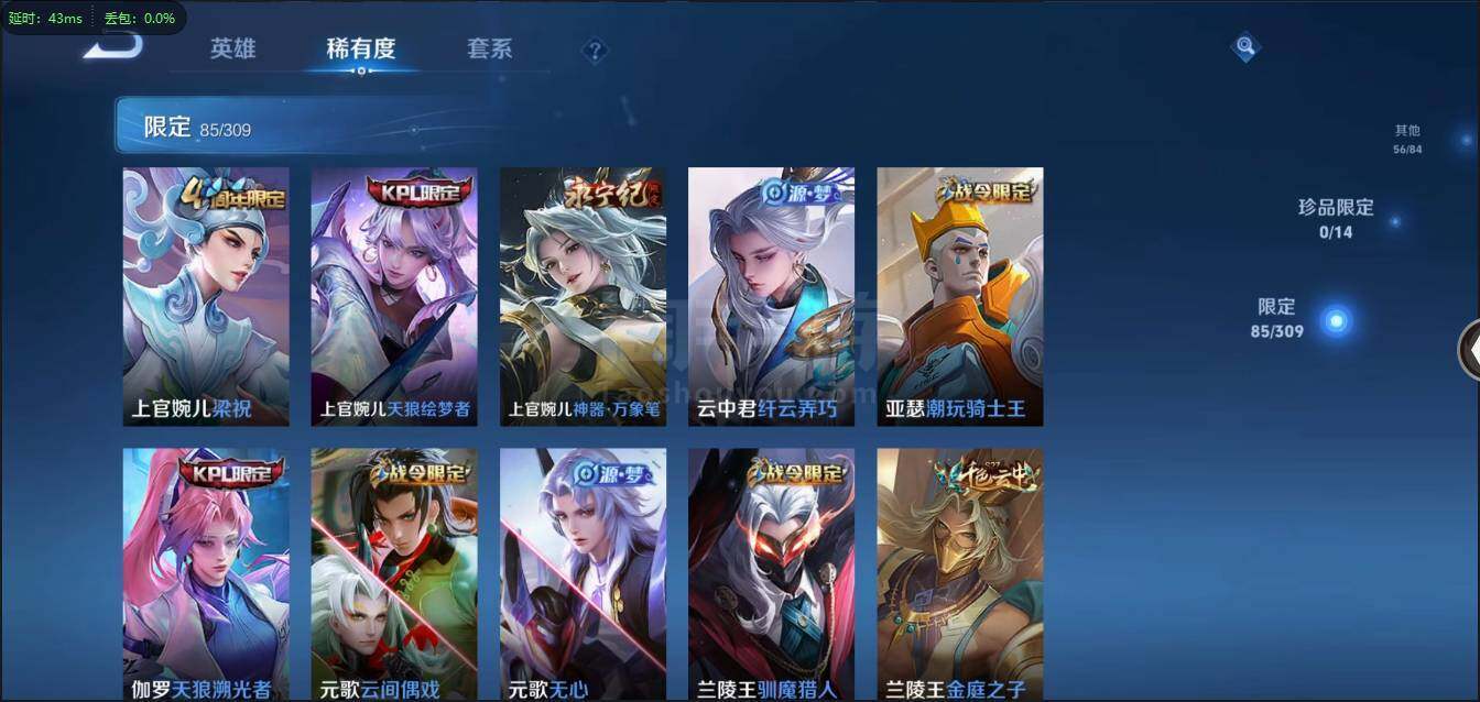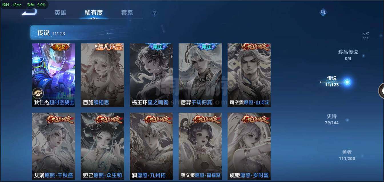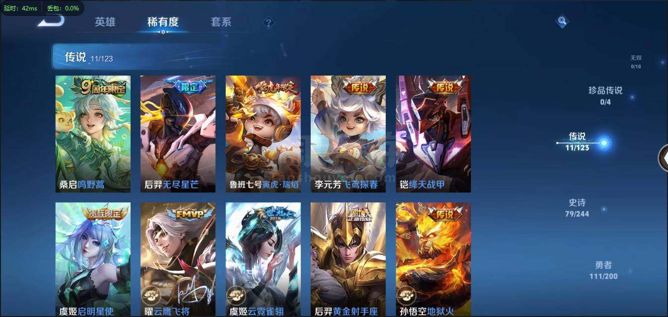 【传说皮肤】:狄仁杰超时空战士,孙悟空地狱火,后羿黄金射手座,虞姬云霓雀翎,曜云鹰飞将,虞姬启明星使,铠绛天战甲,李元芳飞鸢探春,鲁班七号寅虎瑞焰,后羿无尽星芒,桑
