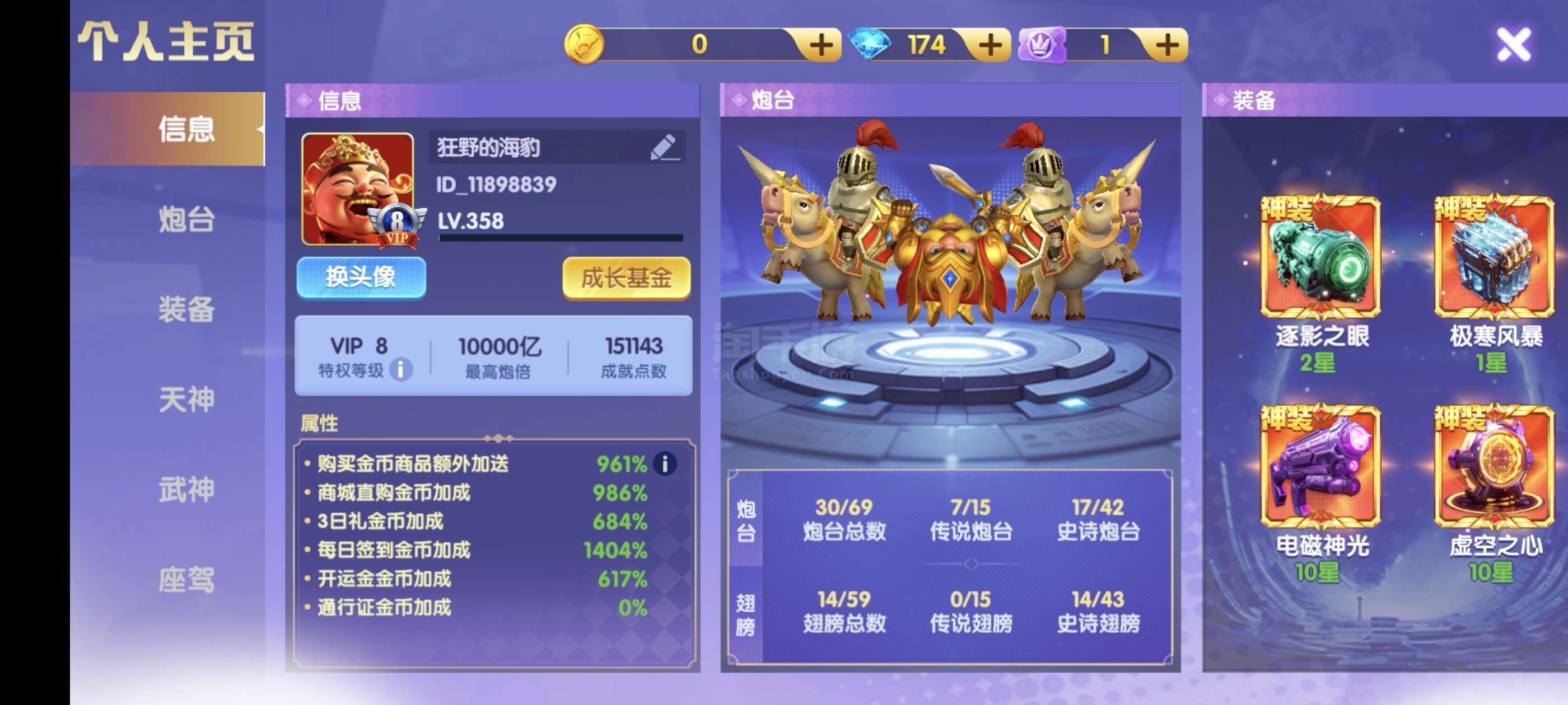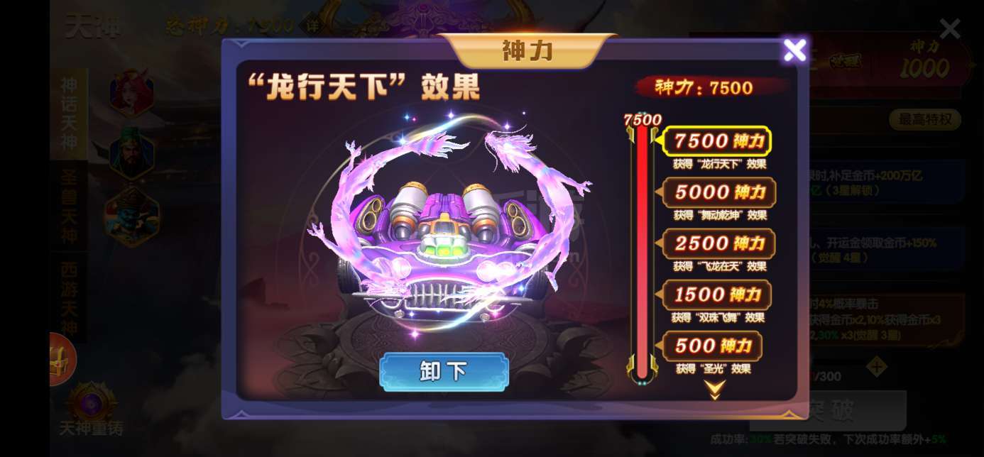 小米破产号V9天神7500双粉龙极品养老号天王2⭐️觉醒2套武神羁绊4级洪荒3个座驾武神连斩2400