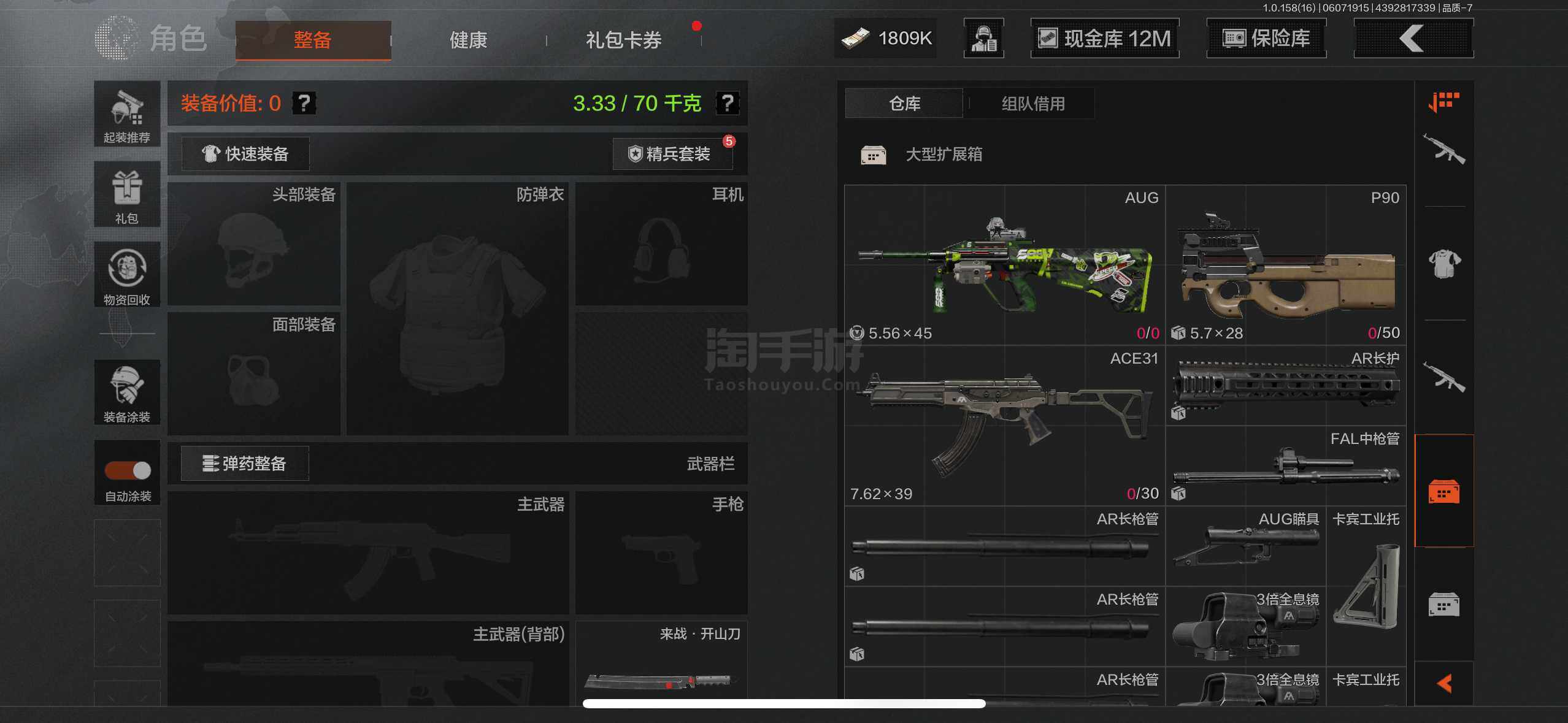 苹果Q区可二次仓库价值25.6m 币12m1809k,刀皮:盘牙·彻甲短刃,工兵铲,来战·开山刀