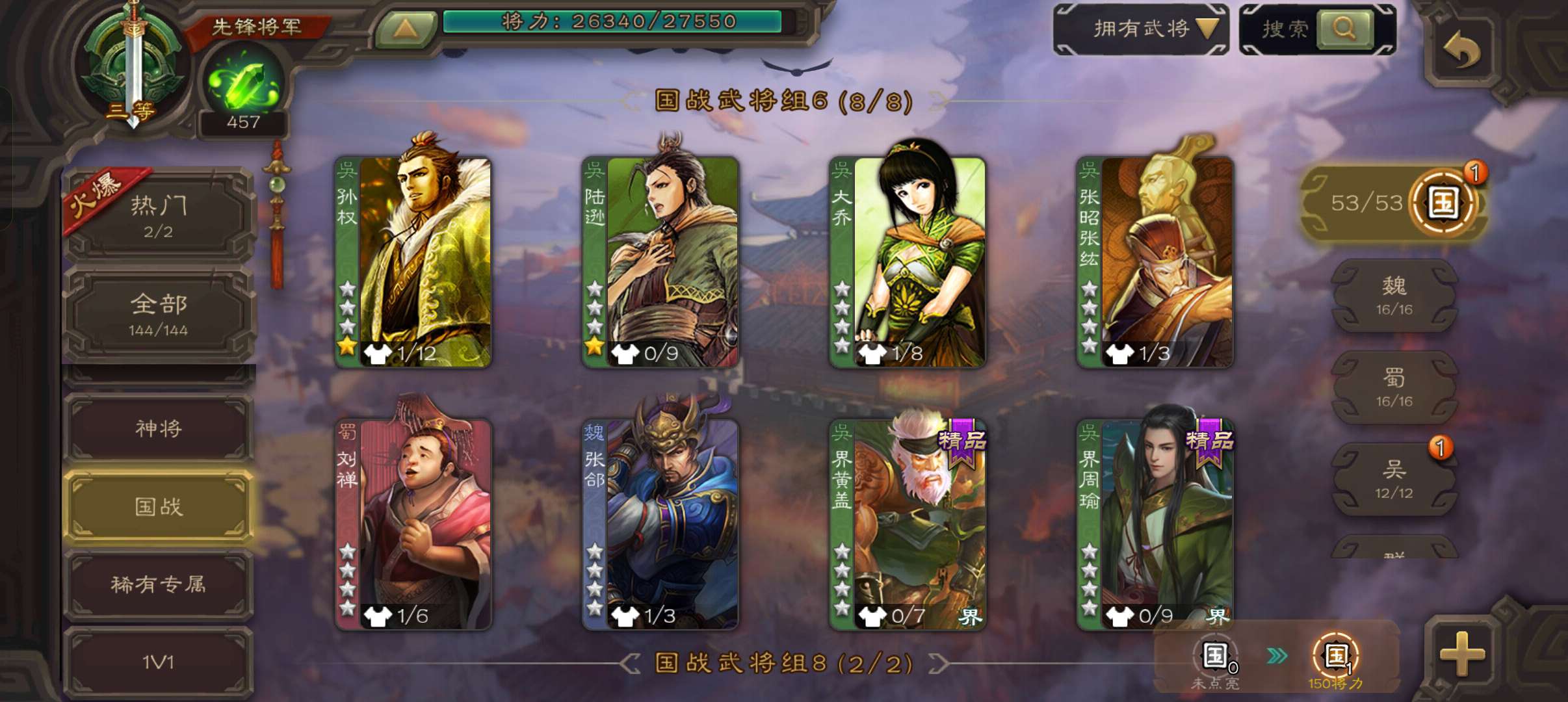 5.2万豆,回廊动白马回廊动神吕布谋马超界朱然赵襄5史诗先锋,神吕蒙谋高顺崔琰甘夫人张翼144将