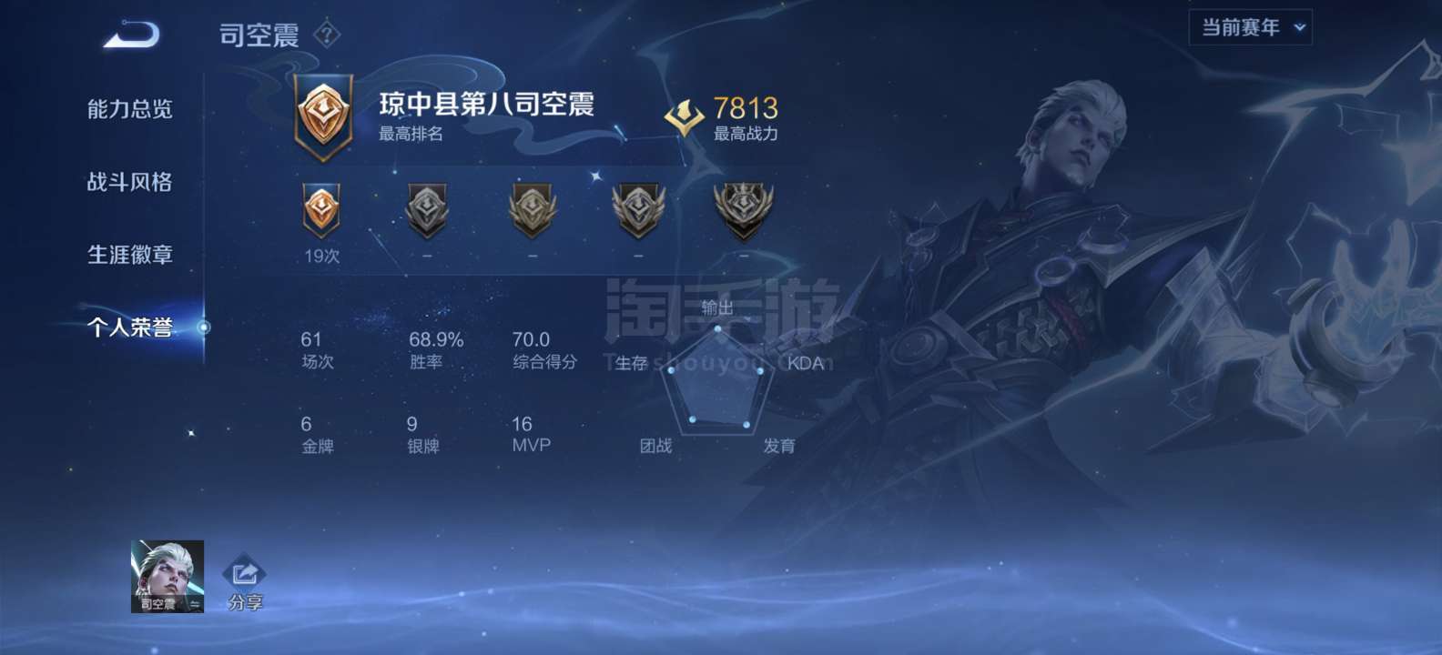 司空震全皮,双区,司空震600多场,高战力,赛季末,如果不想要战绩,一个赛季水洗,二次异地三天