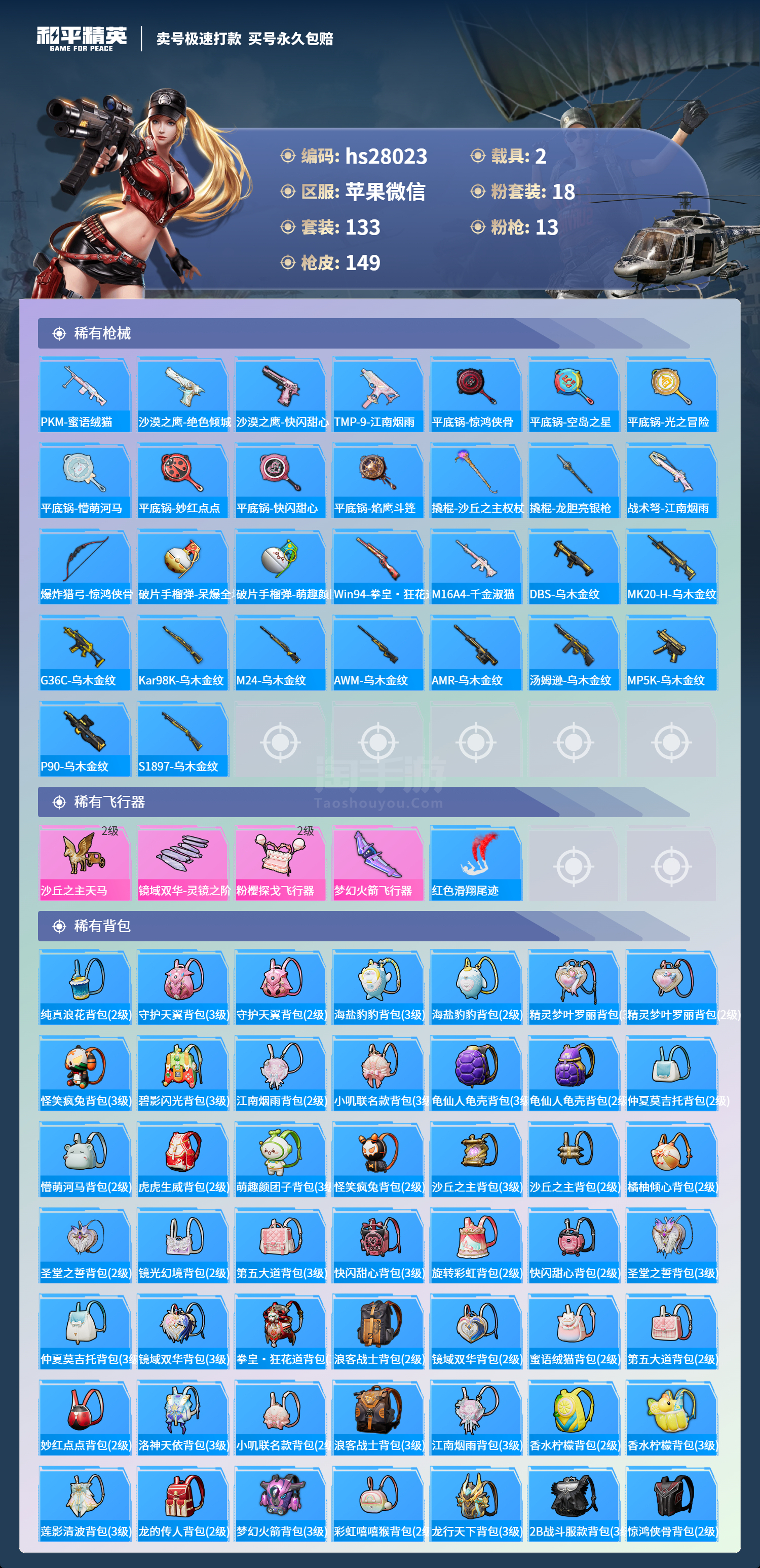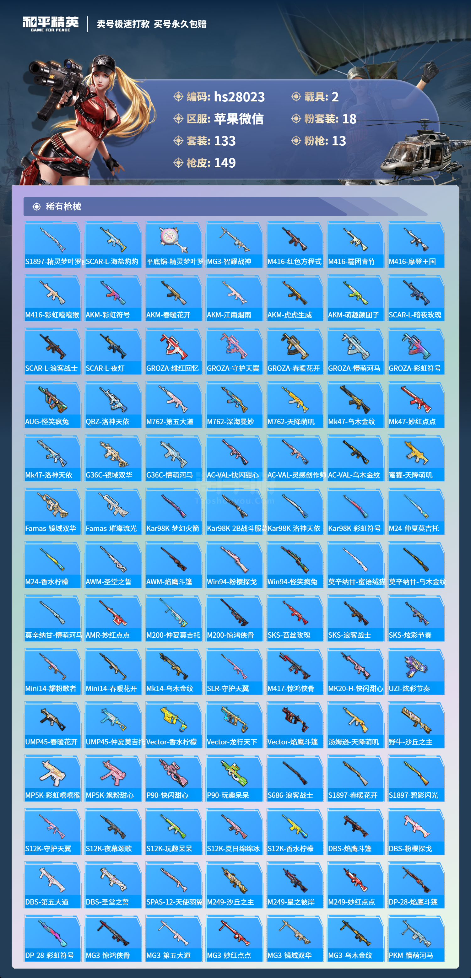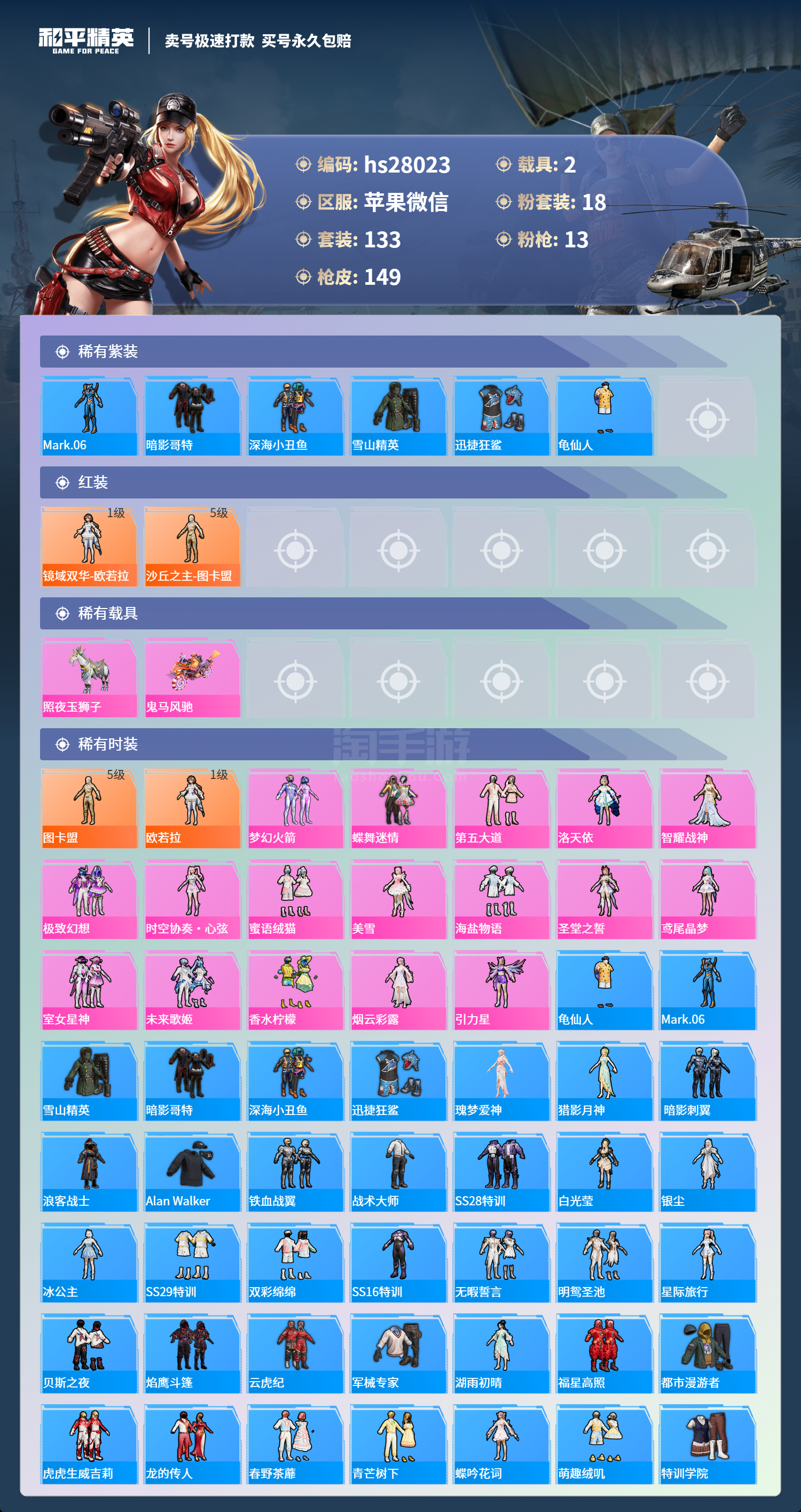 和平精英【苹果微信】苹果微信-14王牌印记-18粉装-13特效枪-2载具-7157
