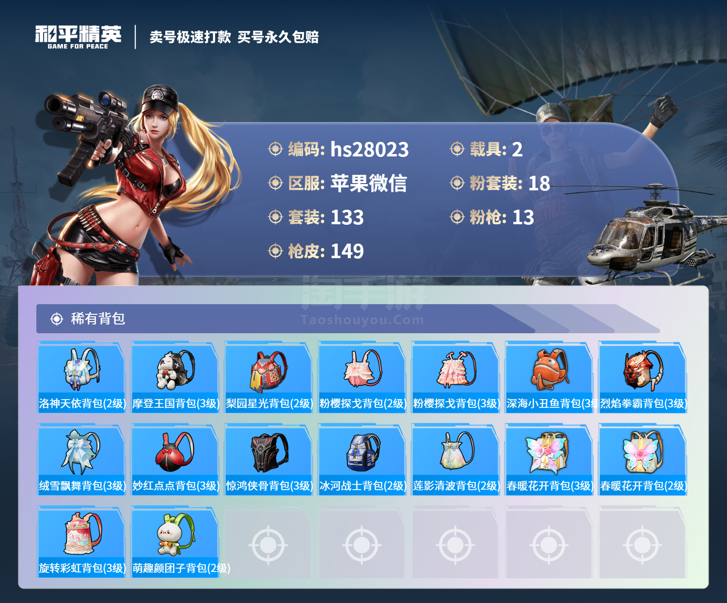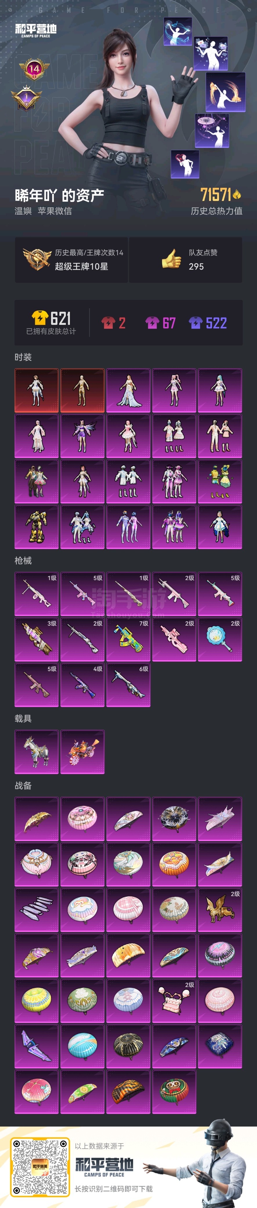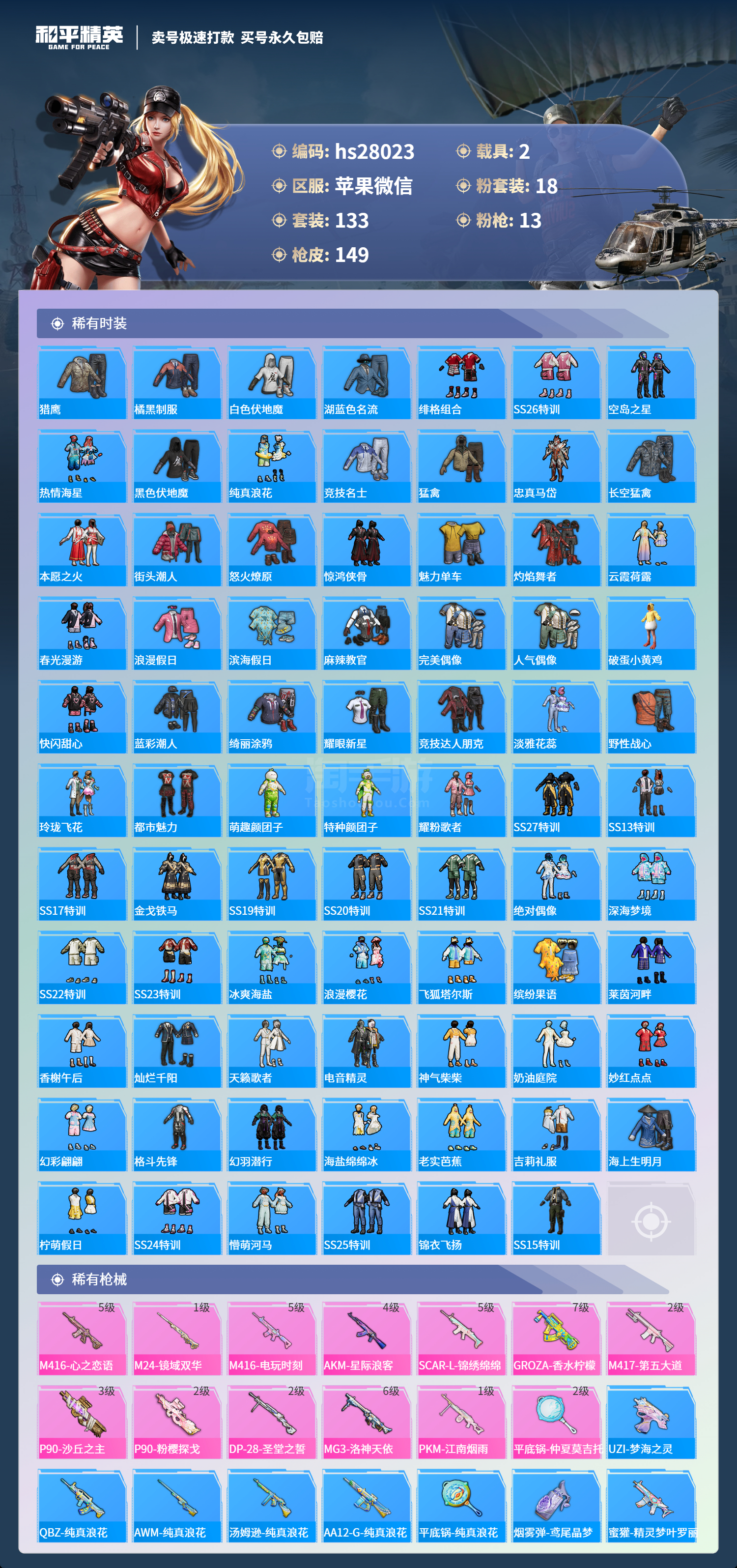 和平精英【苹果微信】苹果微信-14王牌印记-18粉装-13特效枪-2载具-7157