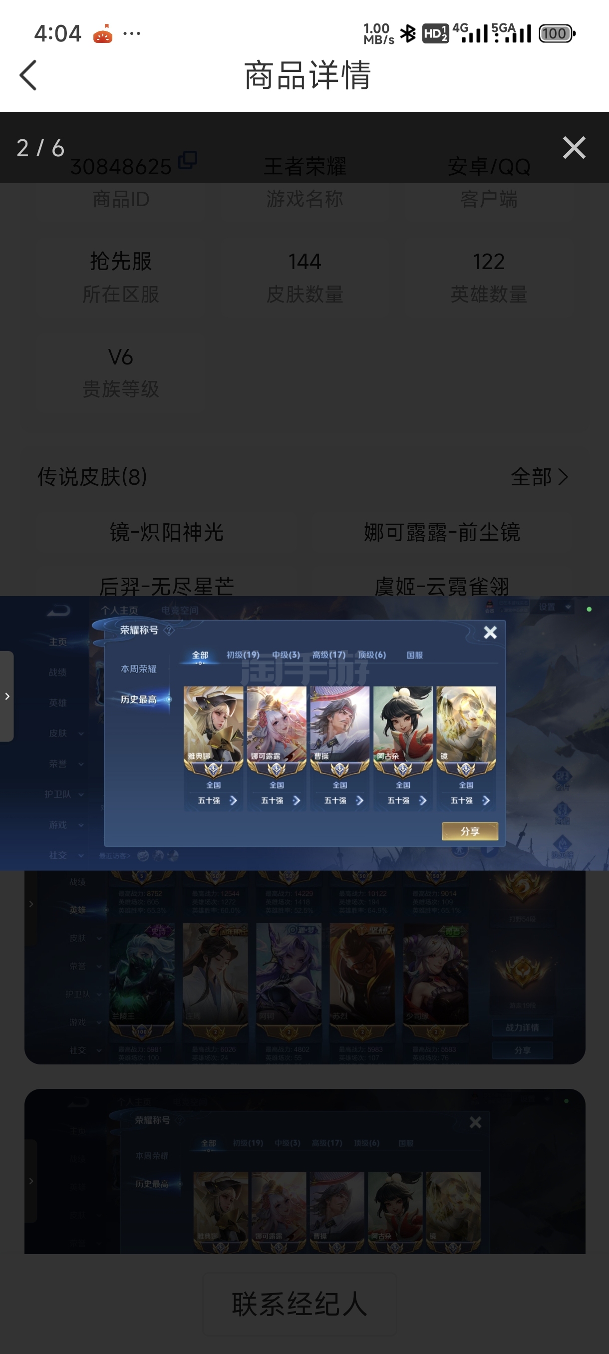通过App,与卖家商议价格及保险,并向卖家索要账号最新截图,确认后下单购买。