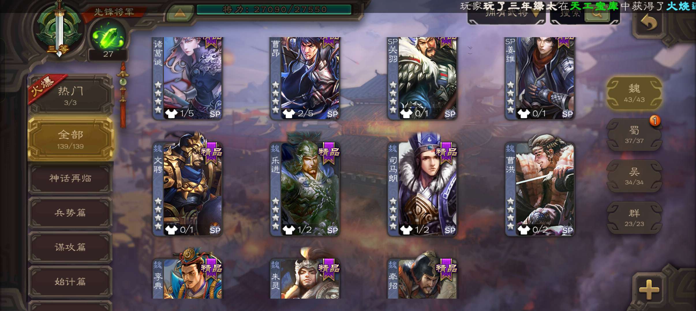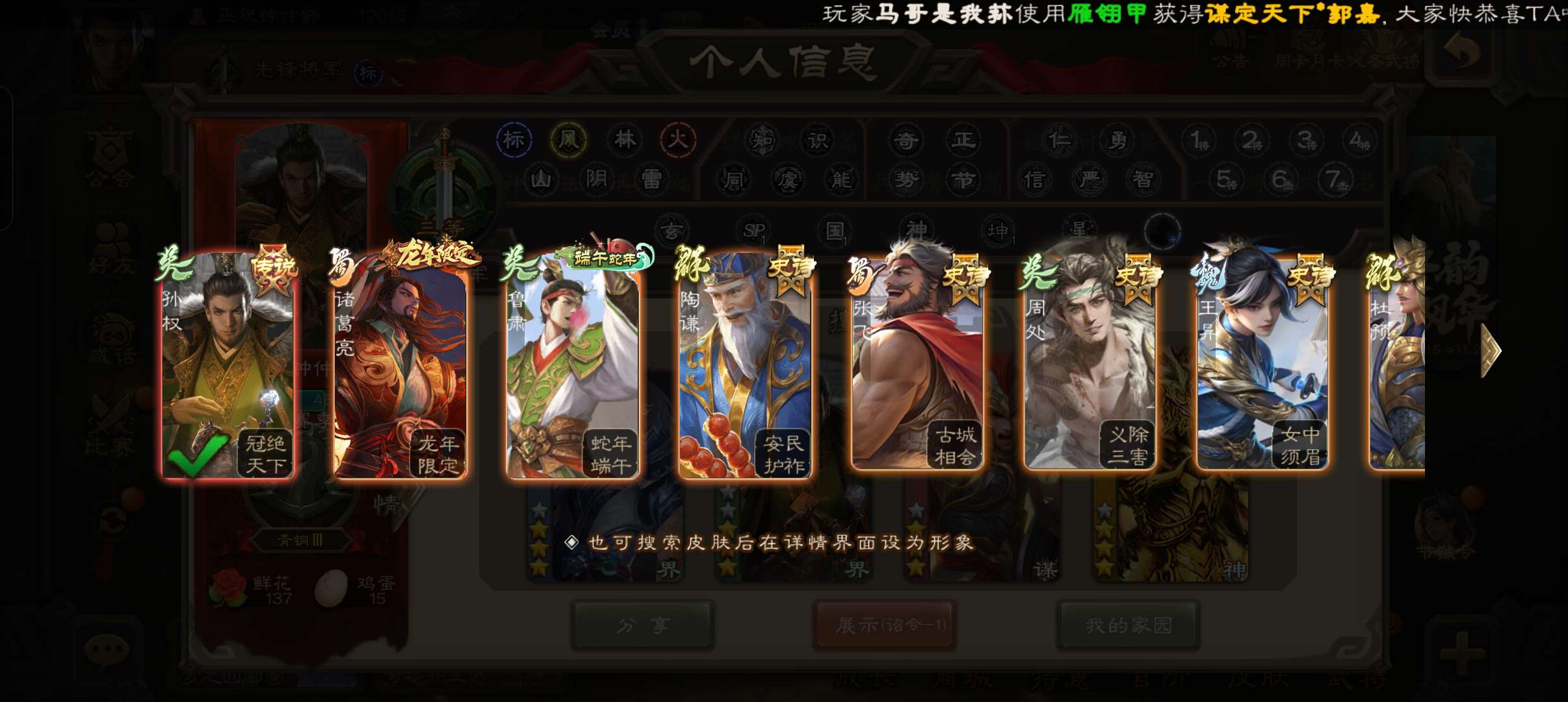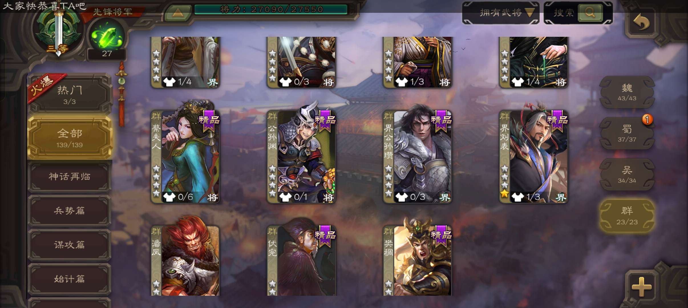 4.4万豆,冠绝天下界孙权,界钟会沙摩柯神吕布带皮谋马超4史诗先锋,神吕蒙谋韩当谋高顺甘夫人139将