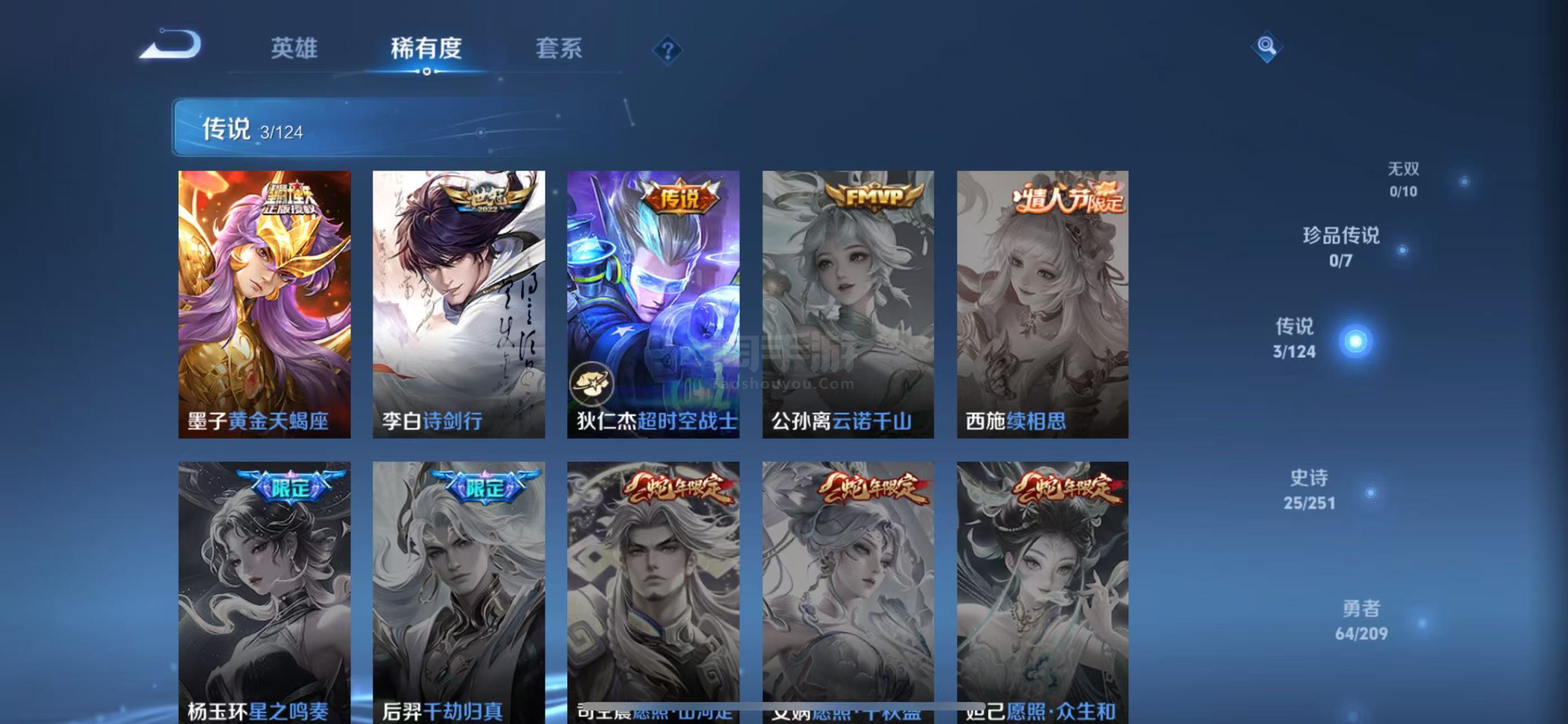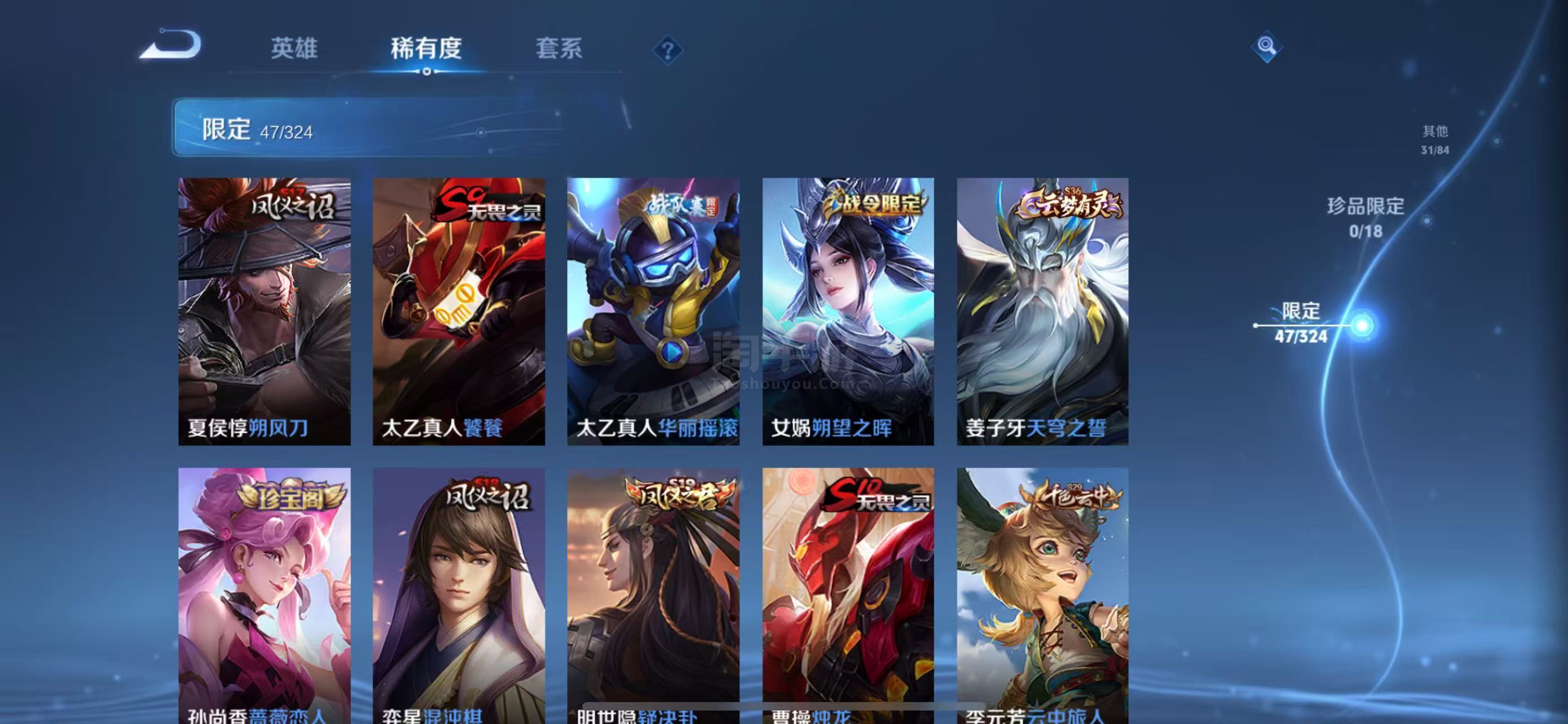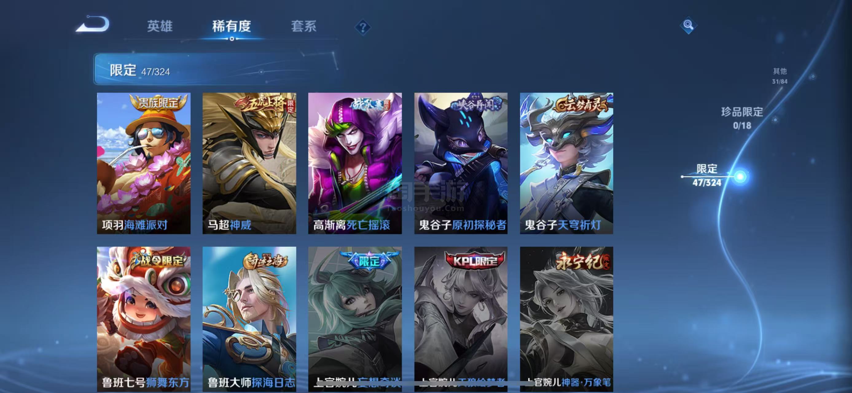 王者荣耀-苹果QQ 贵族6 传说皮肤3 史诗皮肤24 皮肤数量123 皮肤价值:67716 英雄121 荣耀黄金III 【内测皮肤】1 孙尚香_蔷薇恋人【传说皮肤】3 墨子_黄金天蝎座 狄仁杰_超时空战士 李白_诗剑行 【史诗皮肤】24 上官婉儿_群星魔术团 狄仁杰_魔术师 赵云_皇家上将 后羿_辉光之辰 花木兰_水晶猎龙者 马超_神威 裴擒虎_李小龙 上官婉儿_梁祝 鲁班七号_狮舞东方 典韦_蓝
