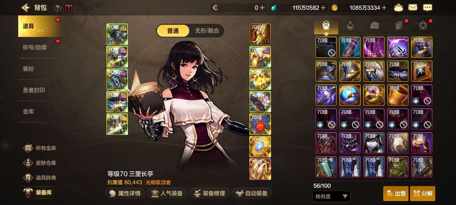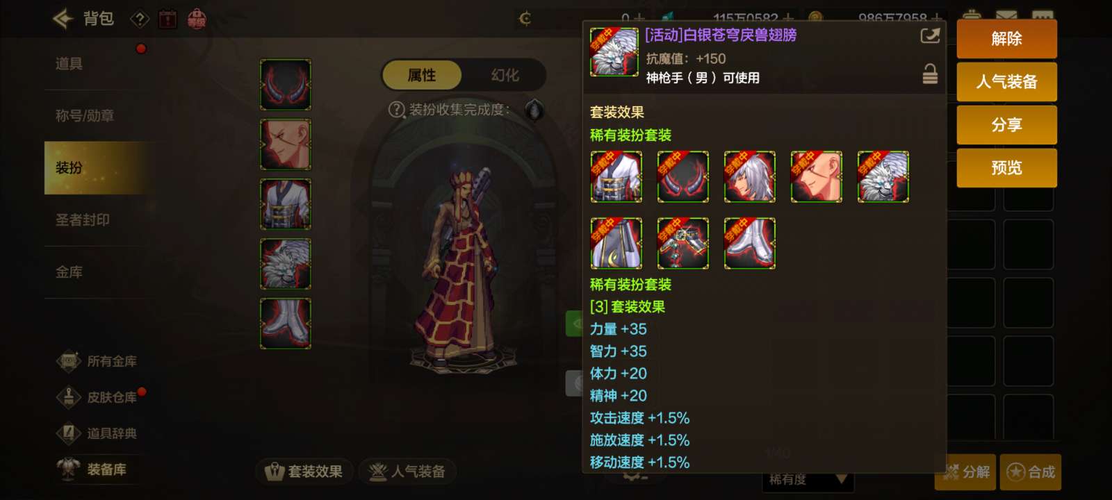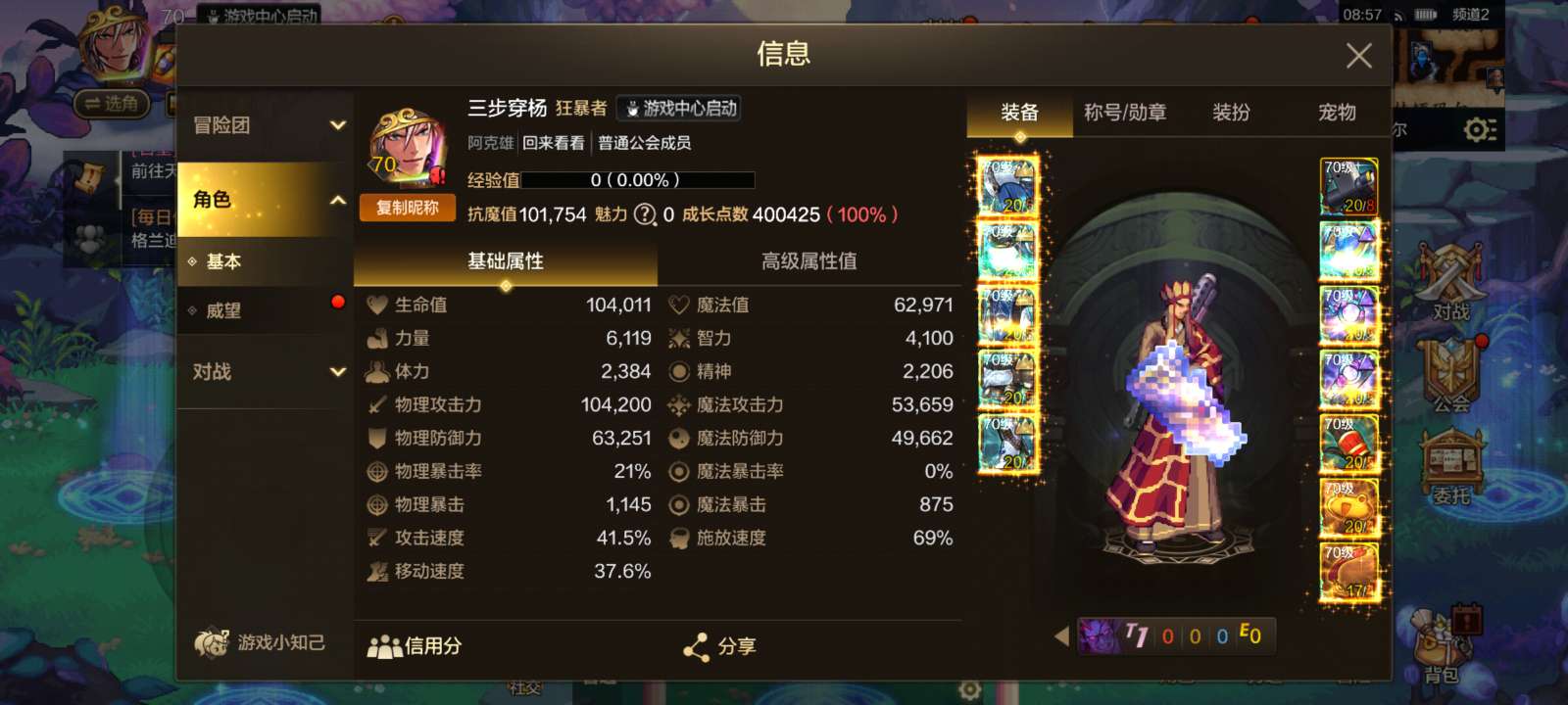 可二次,有百万泰拉,10万抗魔枪炮师,差一件全身20增幅四,有唐三藏装扮,白色天空套。气功有荒古手套