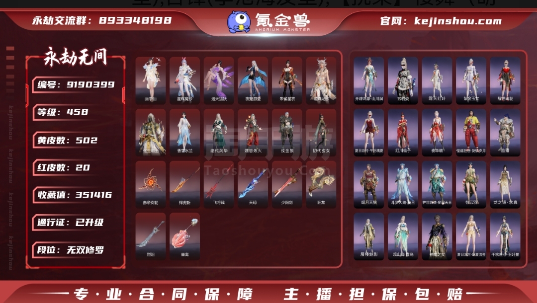 永劫无间(pc版)【端游】17个变身器,泳装很多,金砖买的金皮也很多