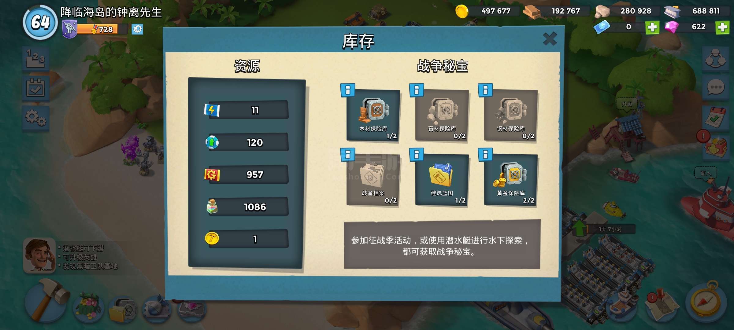 1000多药,两个金库宝箱,一个木材宝箱,还有一个升级蓝图,