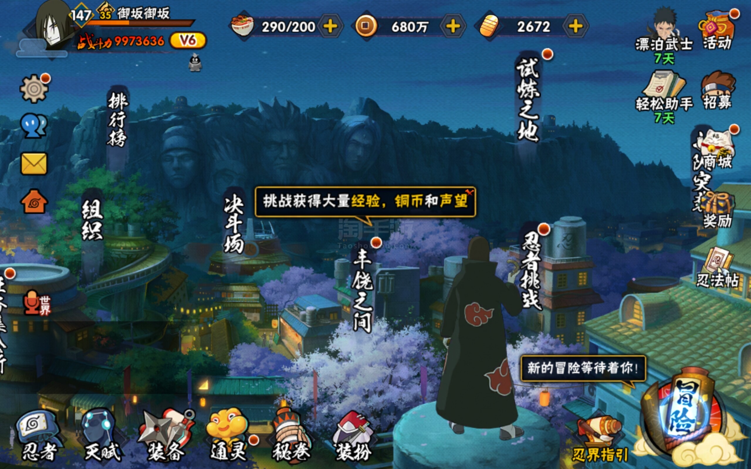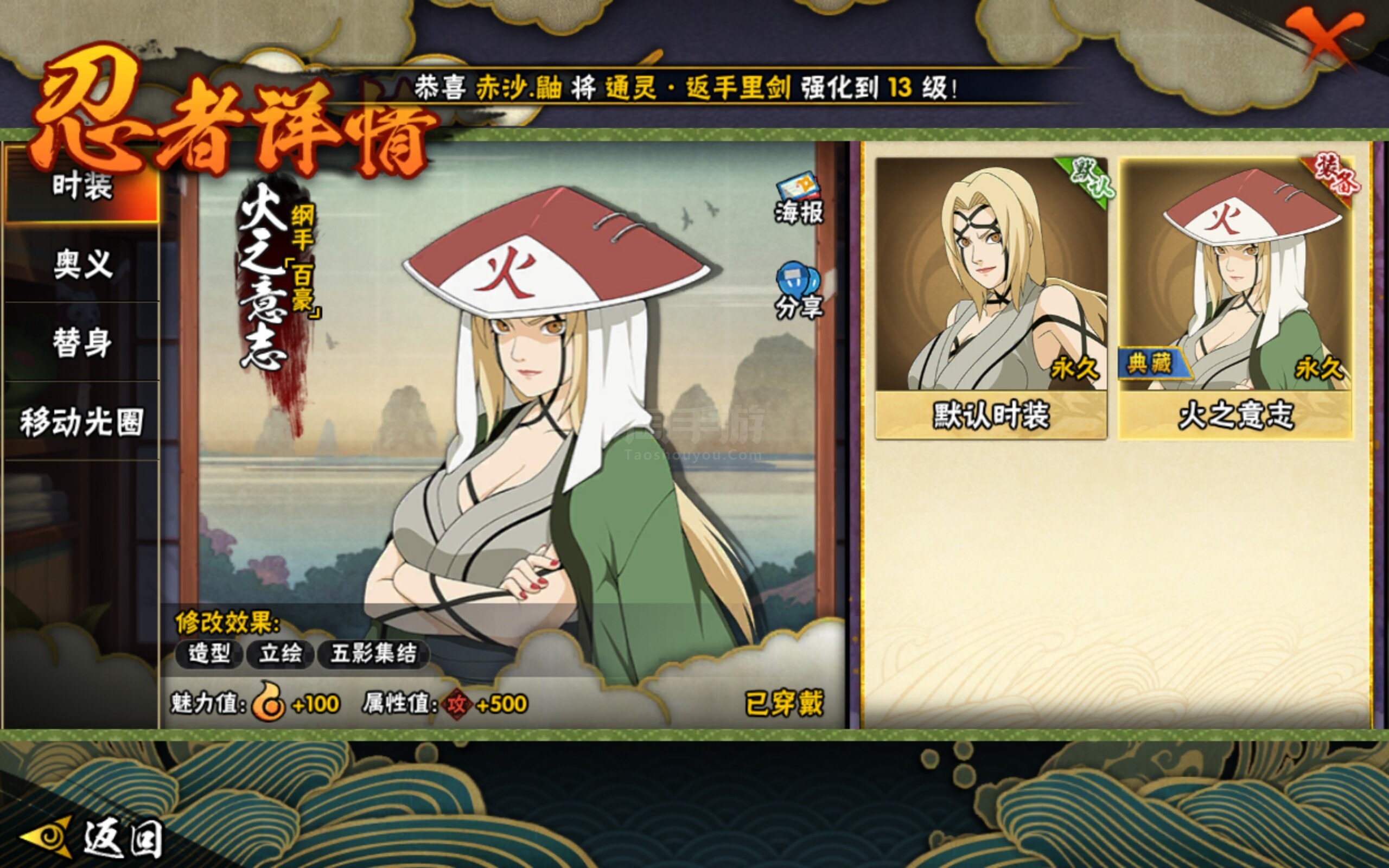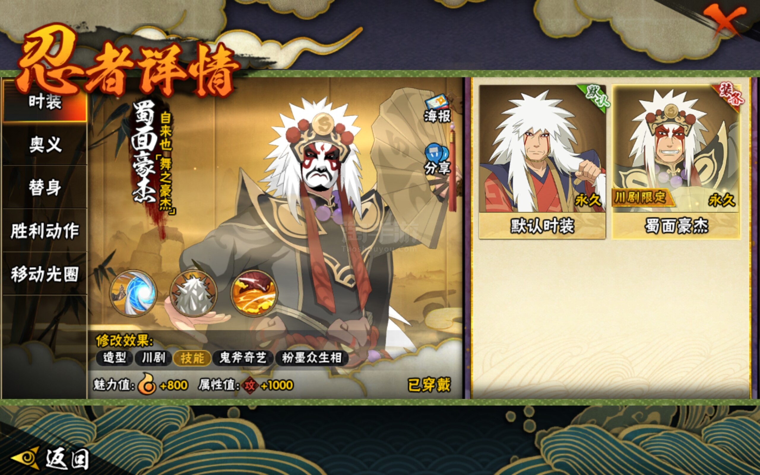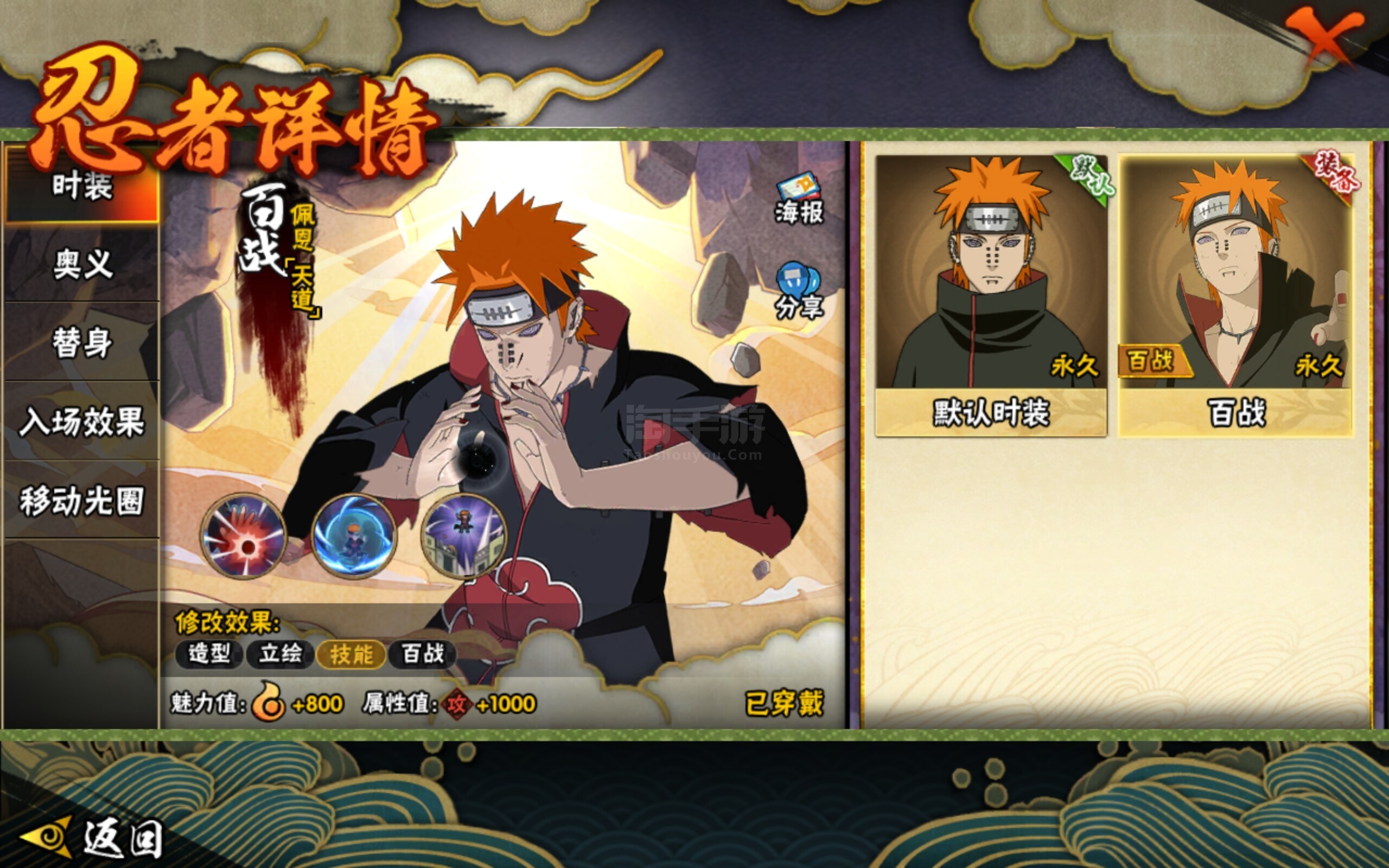 【S级忍者】:宇智波鼬「秽土转生」(3星),宇智波斑「秽土转生·解」(3星),艾「忍界大战」(3星),旗木卡卡西「须佐能乎」(3星),自来也「舞之豪杰」(3星),大蛇丸(3星),纲手「百豪」(3星),波风水门(3星),药师兜「仙人模式」(3星),漩涡鸣人「九喇嘛连结」(3星),佩恩「天道」(3星),宇智波佐助「永恒万花筒」(3星),宇智波斑