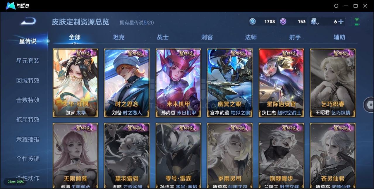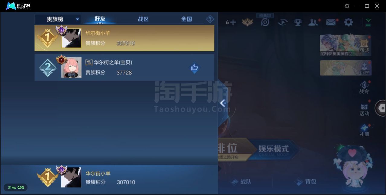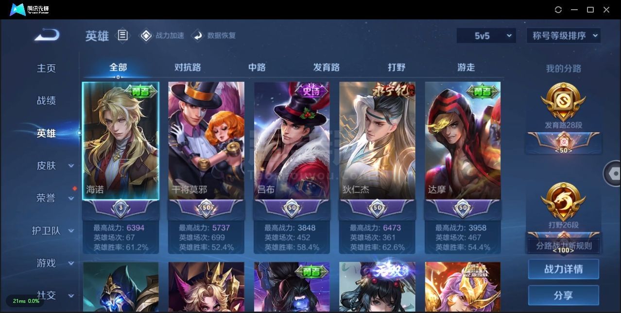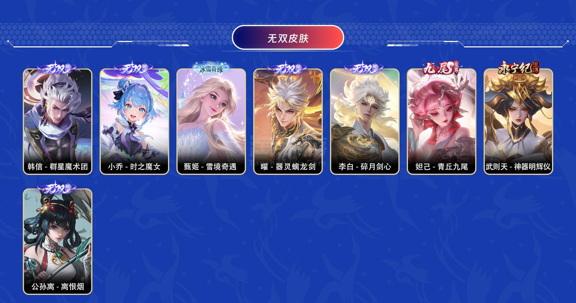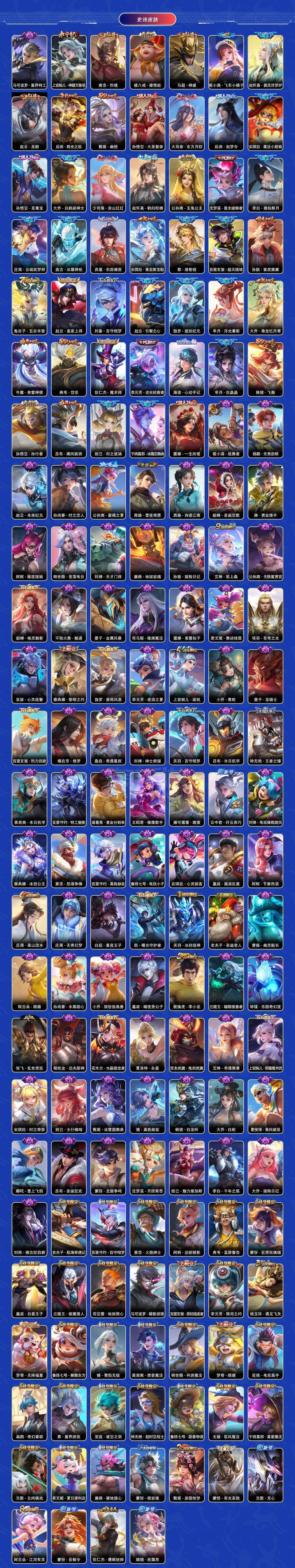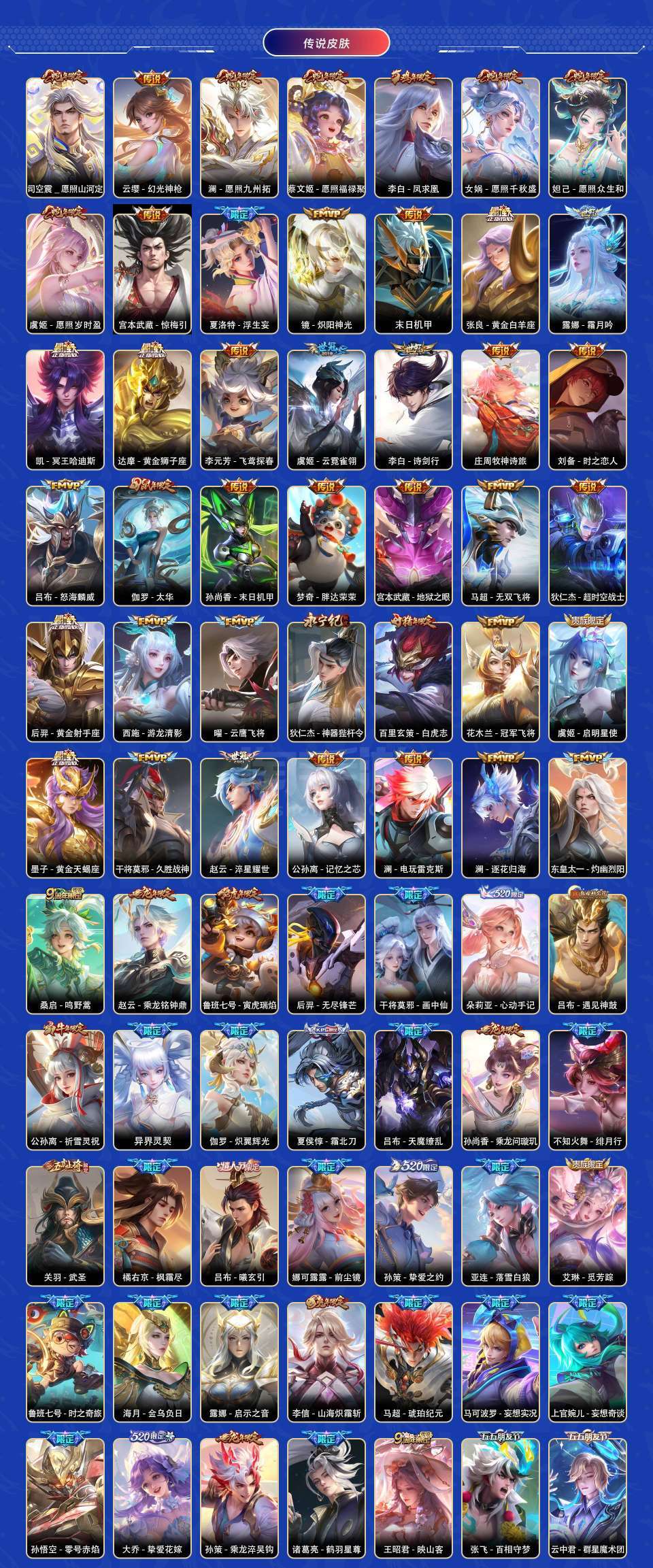 贵族等级:V10 皮肤价值:566548 荣耀典藏:7 无双皮肤:8 传说皮肤:83 史诗皮肤:18