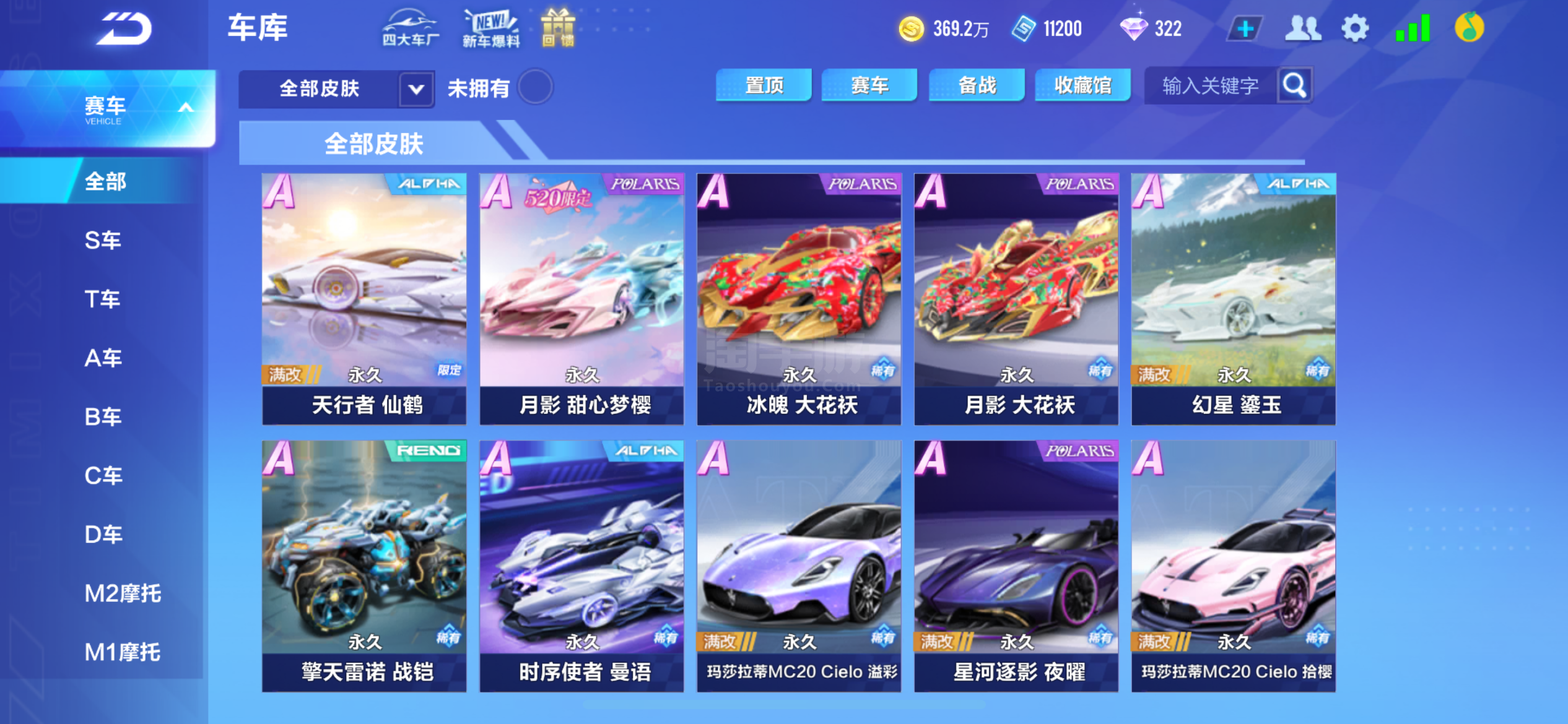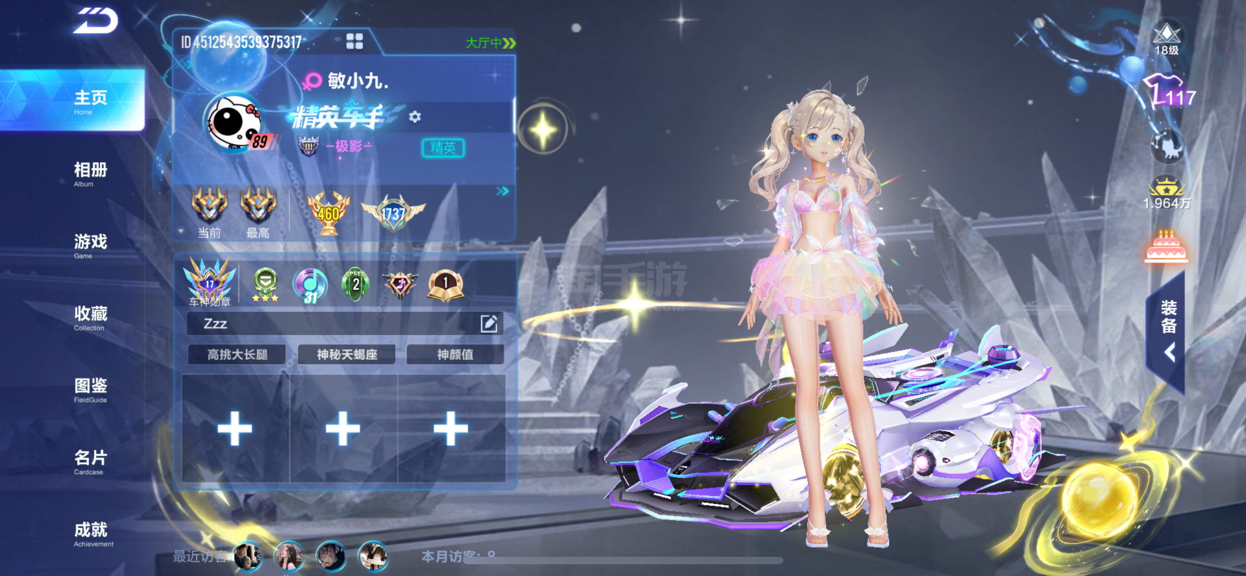 联赛车有:弦音 幻星 天行者 时序使者差一格 有一魔法套装 宠物有女娲小黑 此账号还有LOL手游和王者荣耀