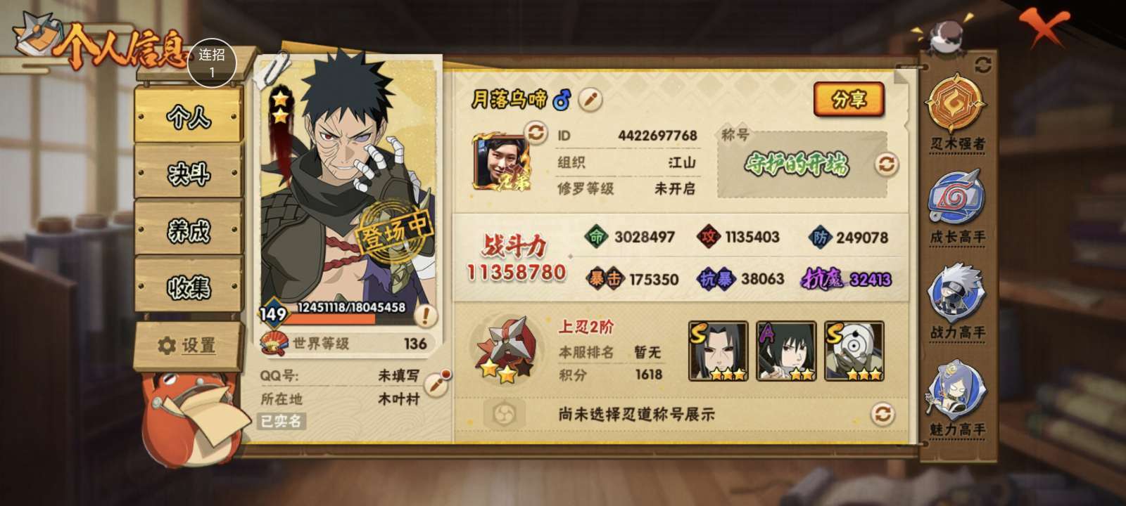 安卓Q-v11-1135W战力-19S忍-须佐鼬马上5星/连体暗区突围