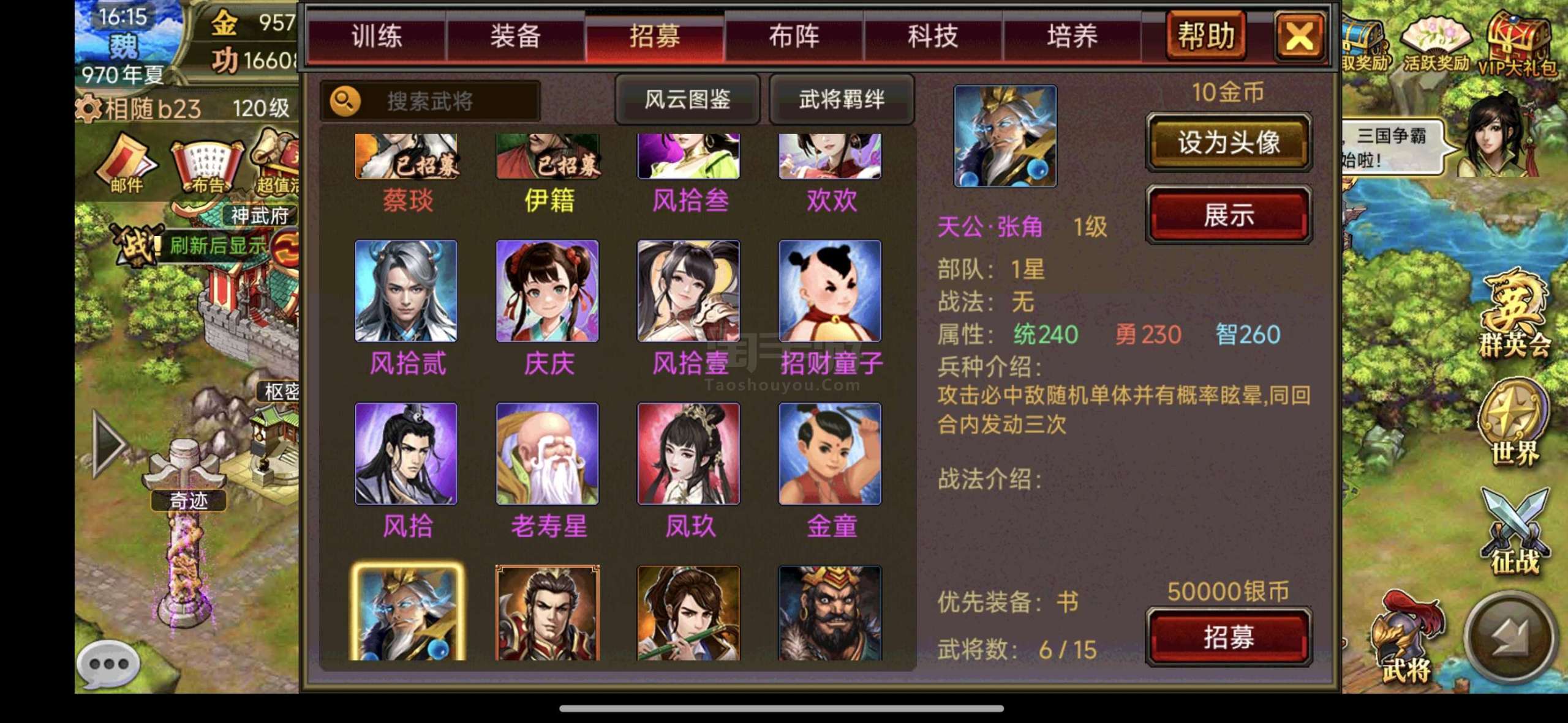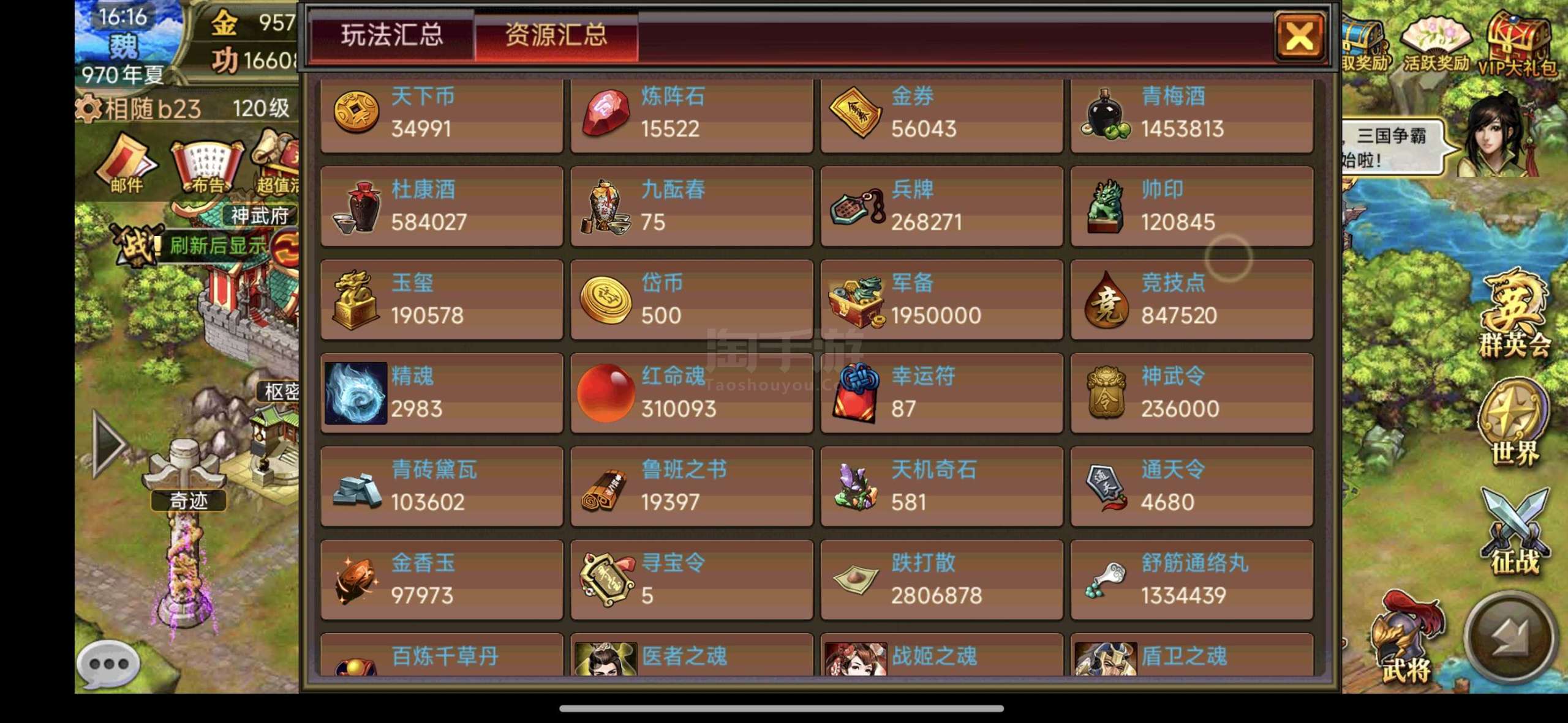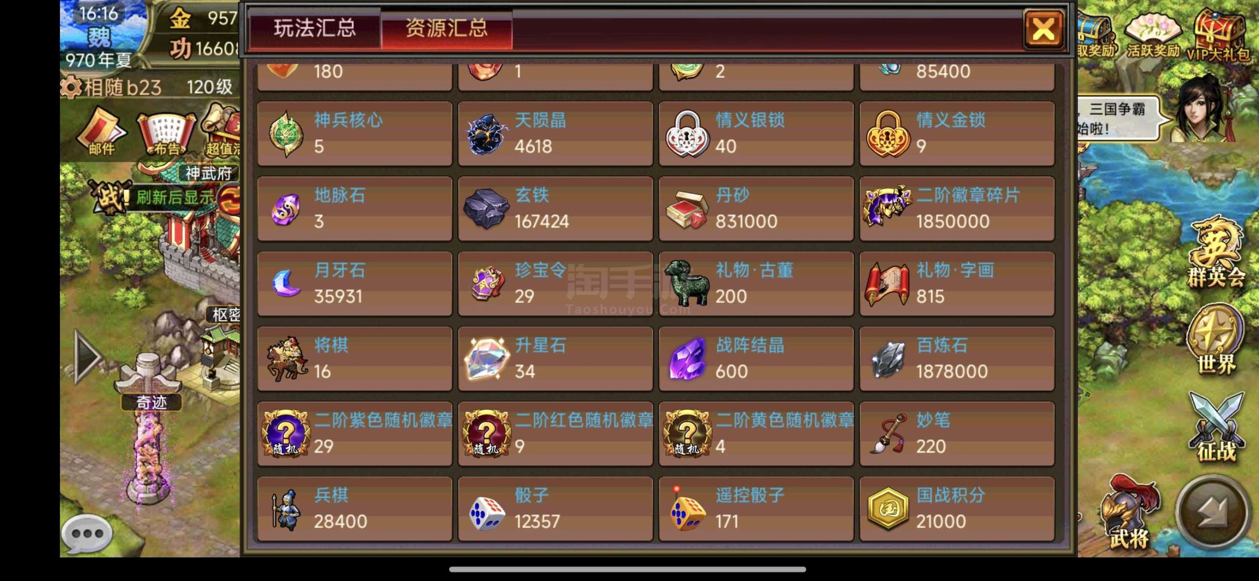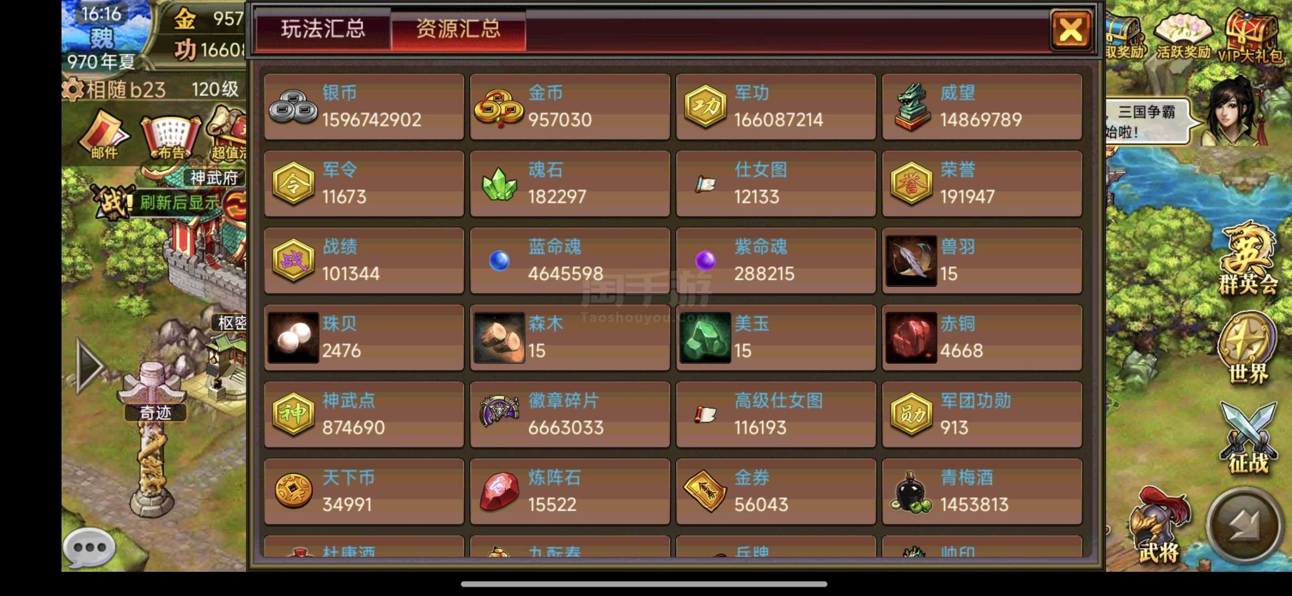 风云天下OL【安卓官方】还价勿扰,金95.7万,酒多,天公张角外加神将宝箱,39势力