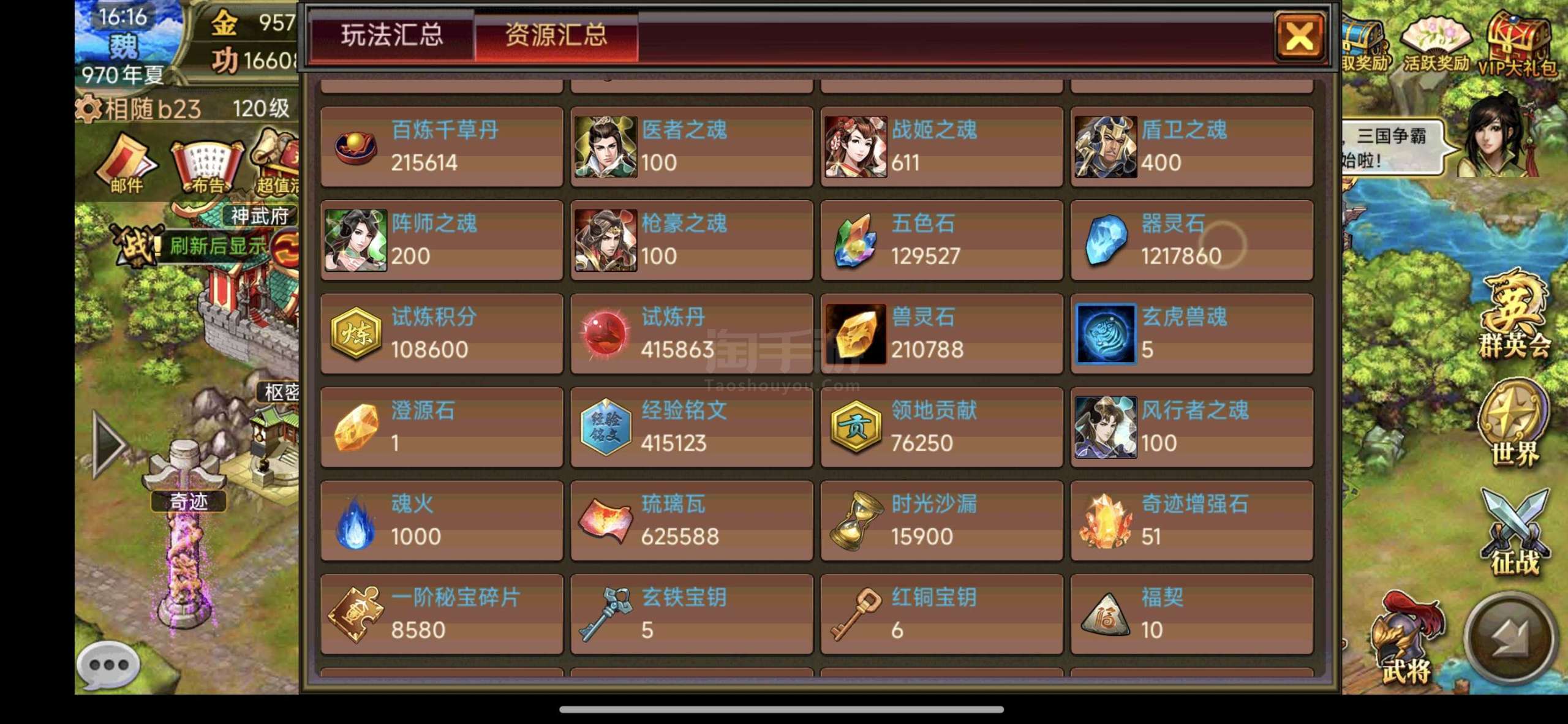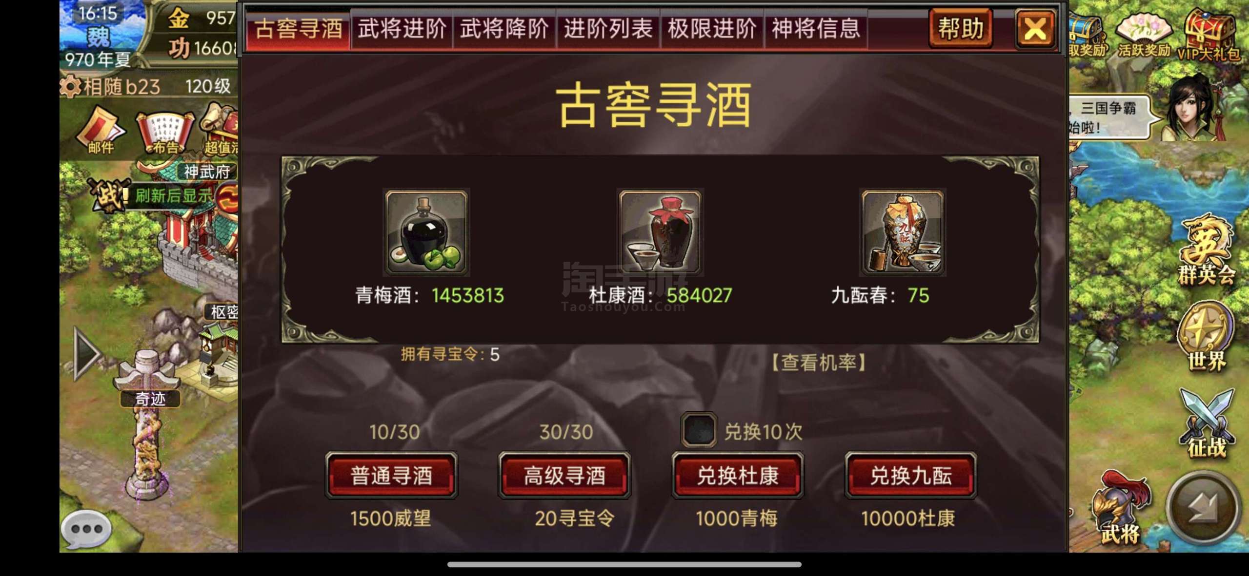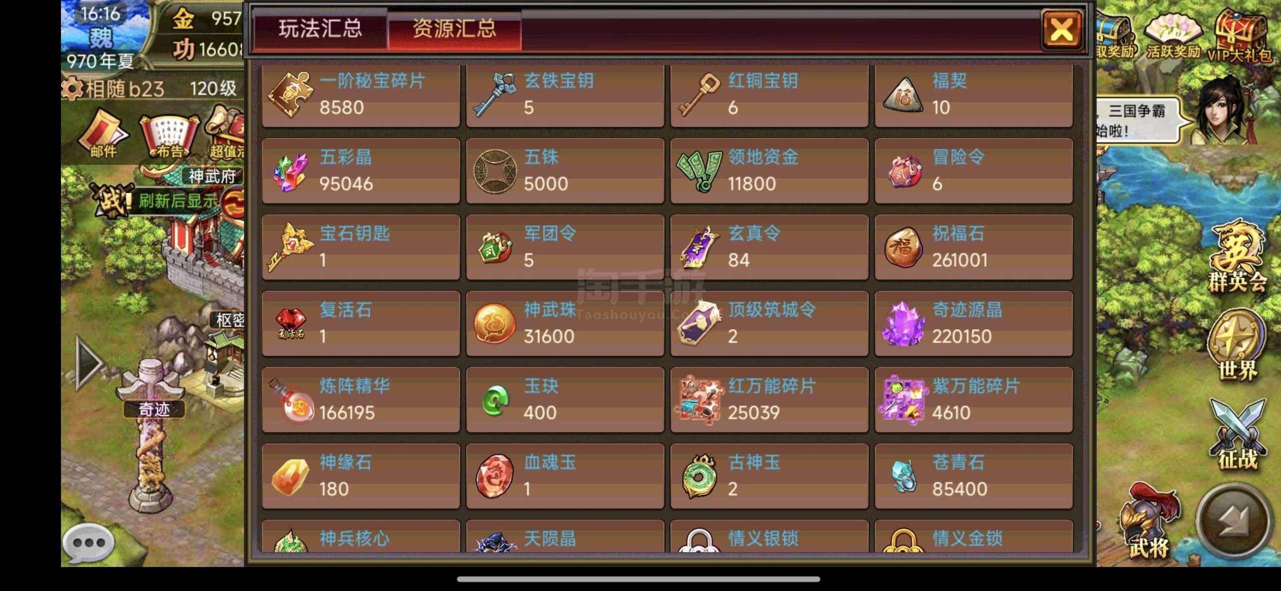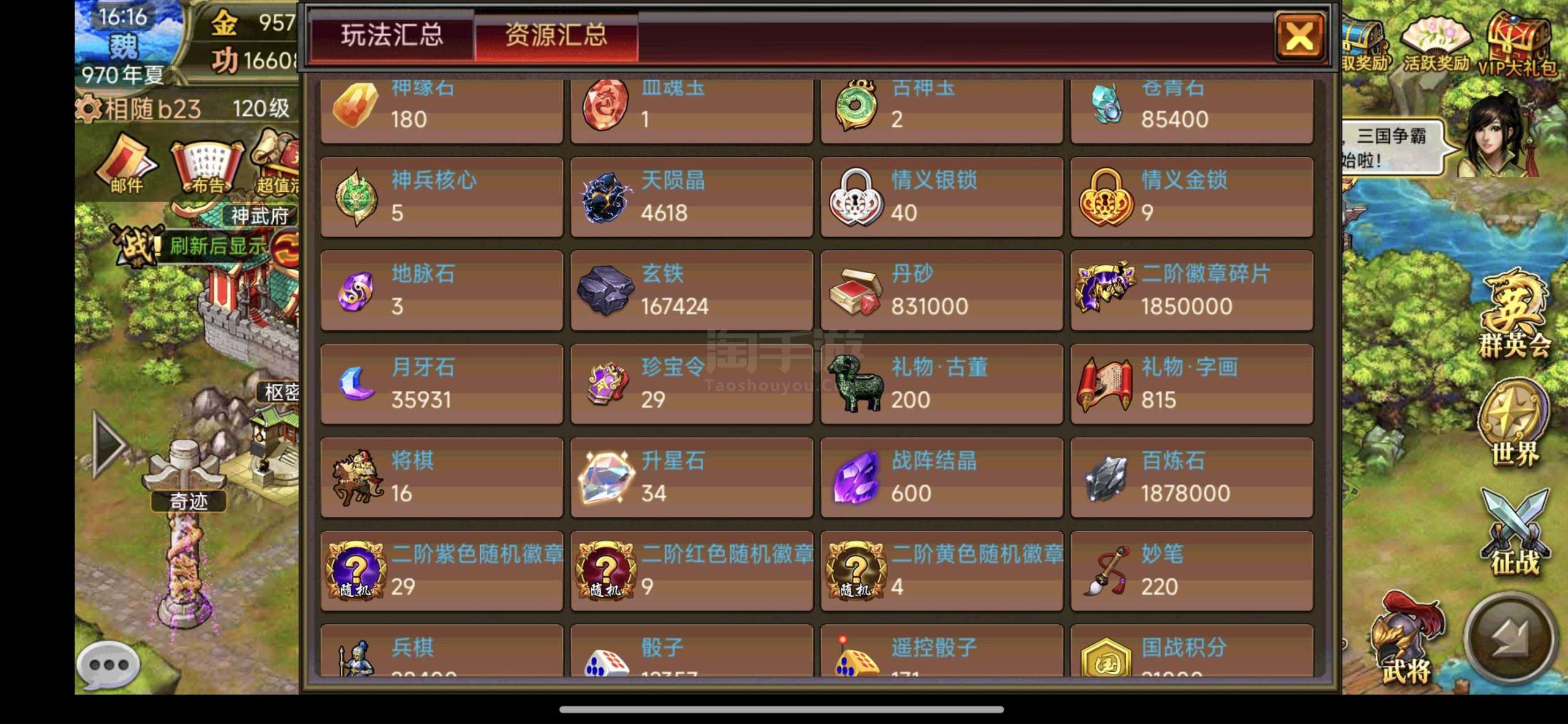 风云天下OL【安卓官方】还价勿扰,金95.7万,酒多,天公张角外加神将宝箱,39势力